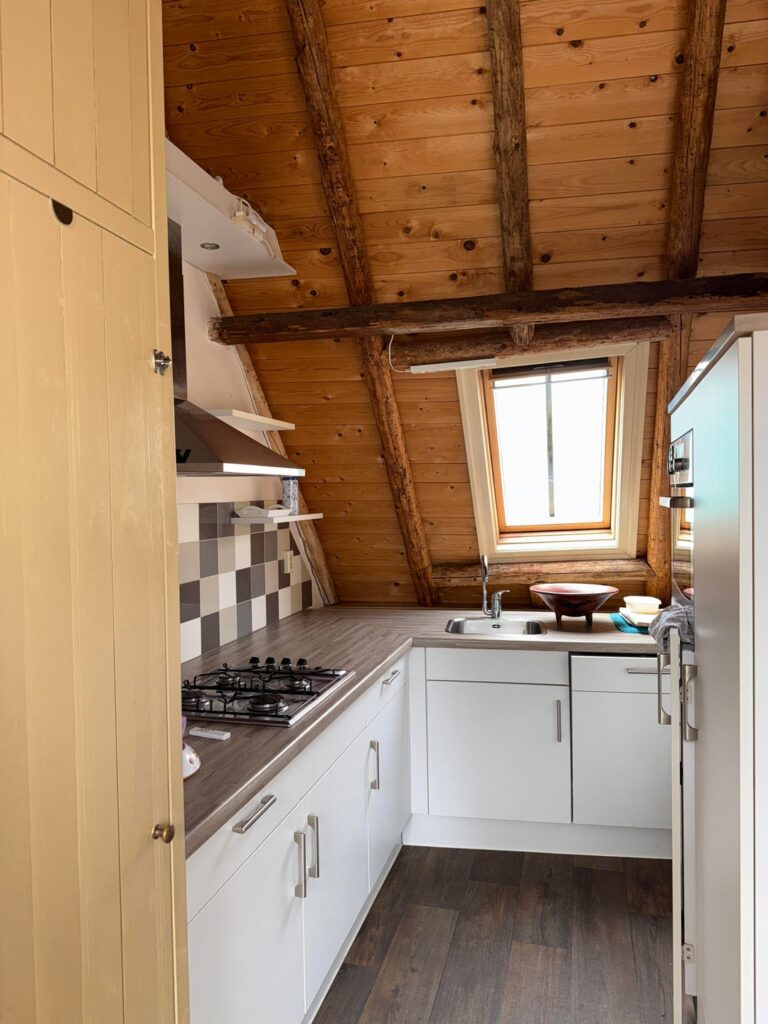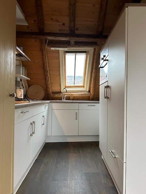 Met een oppervlakte van 87m2 biedt dit charmante verblijf, een ruime woonkamer met open verbinding naar woonkeuken v.v. alle apparatuur, een royale slaapkamer, badkamer met wastafel met meubel, een toilet en een douche, Vanuit de woonkeuken toegang tot een dakterras van ruim 20m2. Het appartement is gelegen op de eerste verdieping onder monumentaal spant (gerenoveerd en geisoleerd) en beschikt over een inpandige berging met wasmachine en droger.
