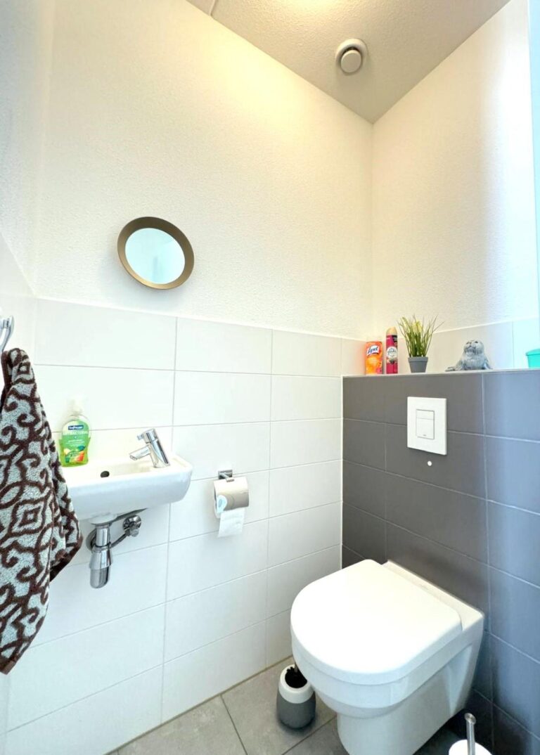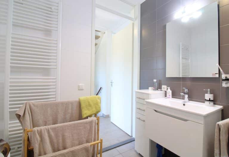 Voorzien van drie slaapkamers, en tevens een net afgewerkte badkamer die beschikt over een inloopdouche, toilet en wastafel. 1e etage is volledig voorzien van een laminaat vloer.