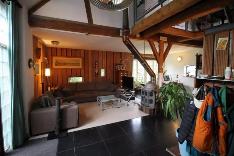 Deze sfeervolle, volledig gemeubileerde woning beschikt onder andere over een ruime woonkamer met houtkachel en een open keuken.