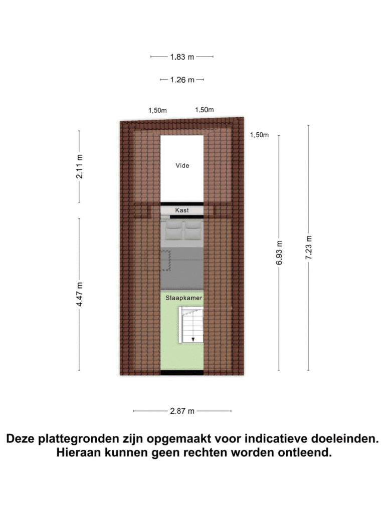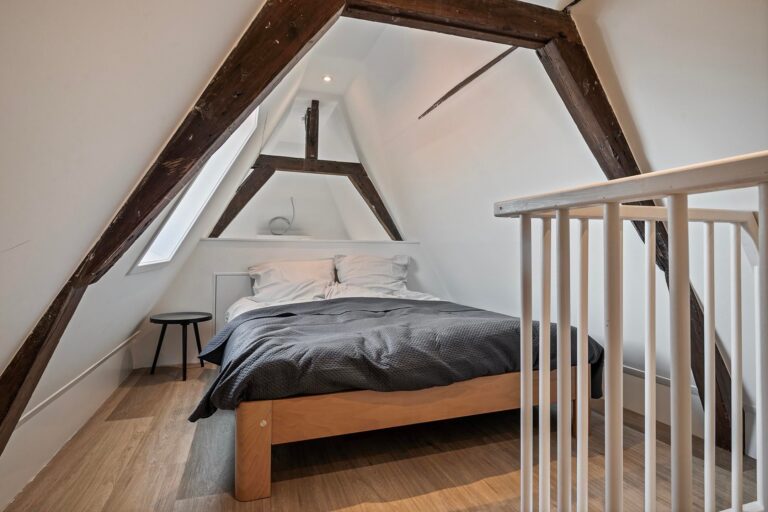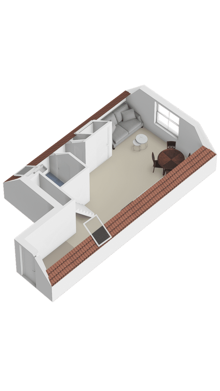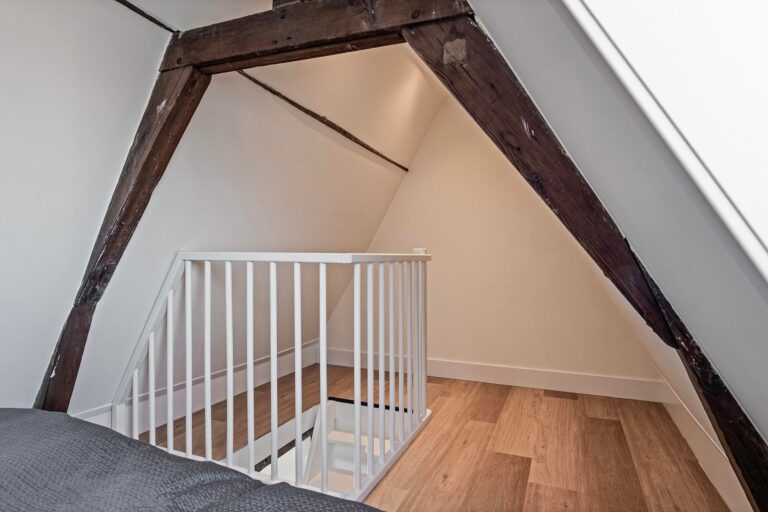 Vanuit de woonkamer heeft u middels een open trap toegang tot het slaapgedeelte van de woning, welke op de vide gelegen is.