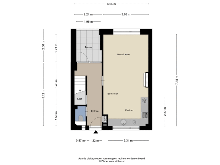 De benedenverdieping beschikt over een doorzon woonkamer met open keuken. De hal biedt toegang tot het separate toilet, een trappenkast en het balkon waar u de hele dag zon heeft en uit de wind zit.