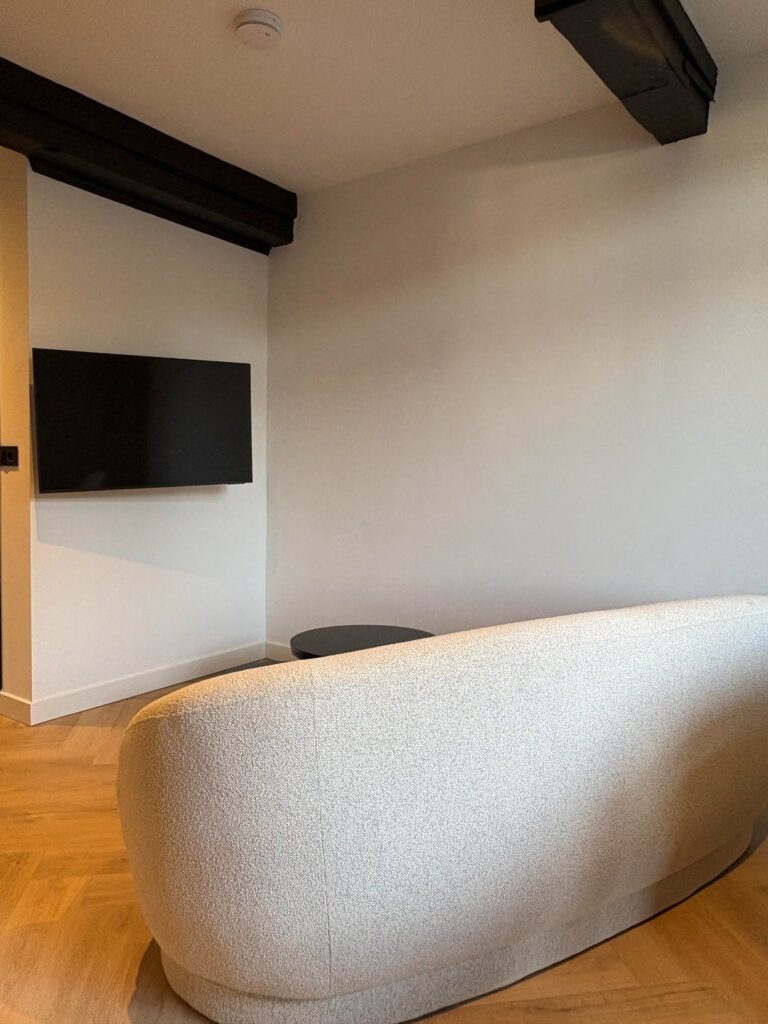 De tweede verdieping beschikt over een slaapkamer die toegang geeft tot de strak afgewerkte badkamer.
