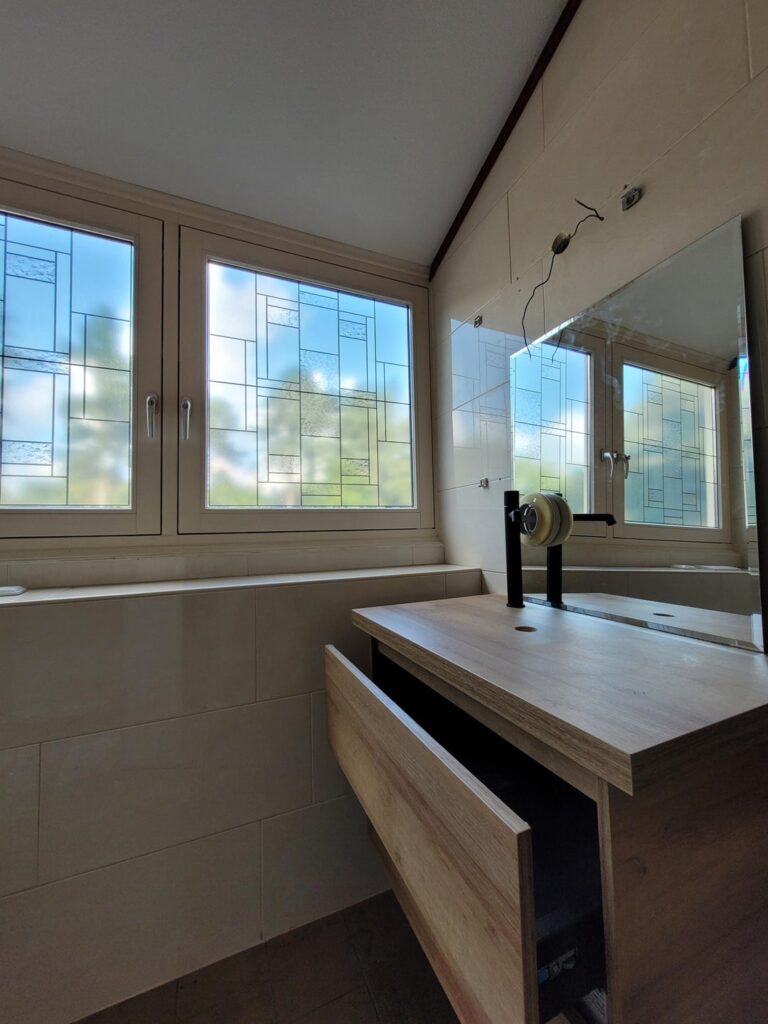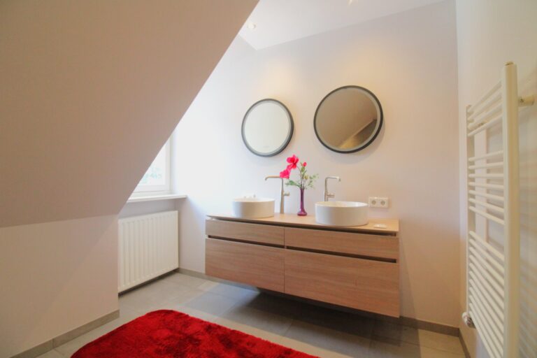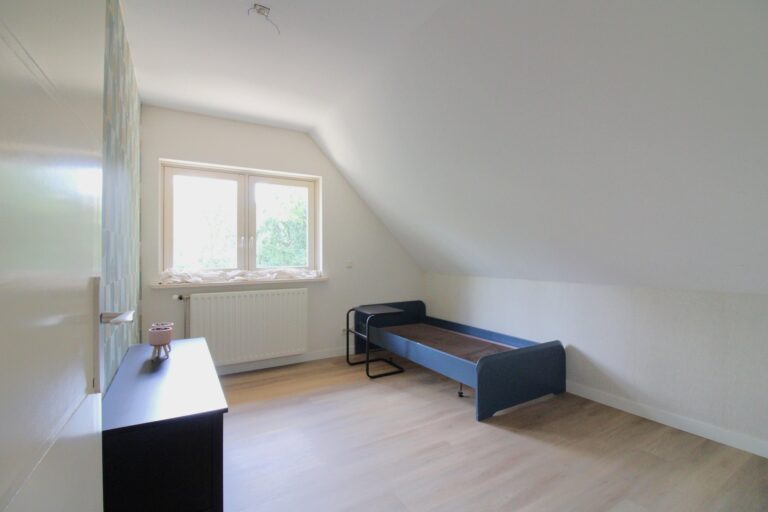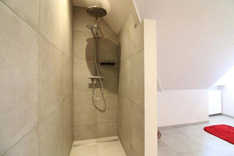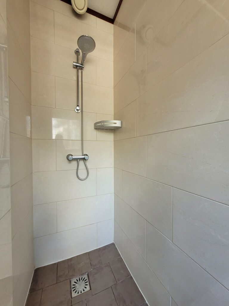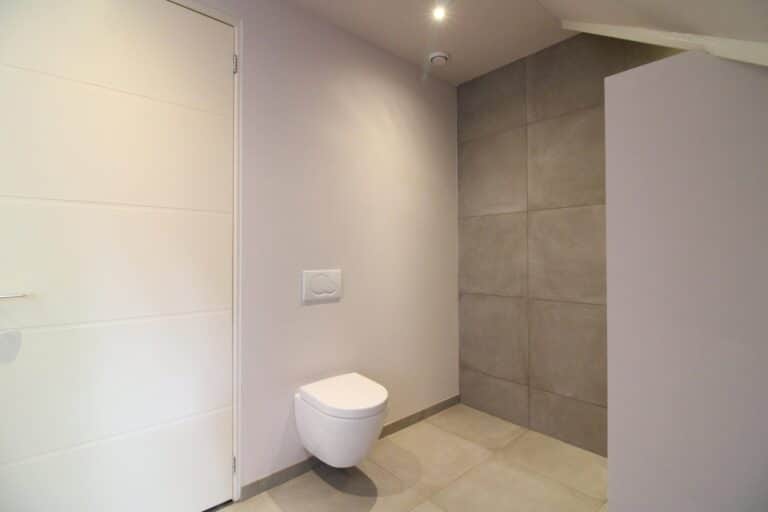Tussengelegen is een badkamer welke op korte termijn wordt afgerond met een wastafel met meubel. Deze beschikt momenteel tevens over een inloopdouche en een toilet.