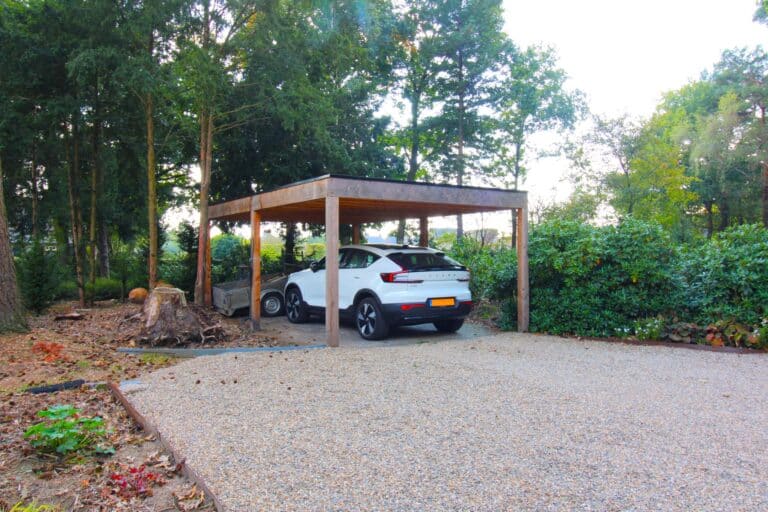 Entree tot het perceel door middel van de elektrisch openslaande poort, van waaruit u de oprit kunt bereiken, beschikkende over een carport. De oprit wordt gedeeld met het naastgelegen perceel.