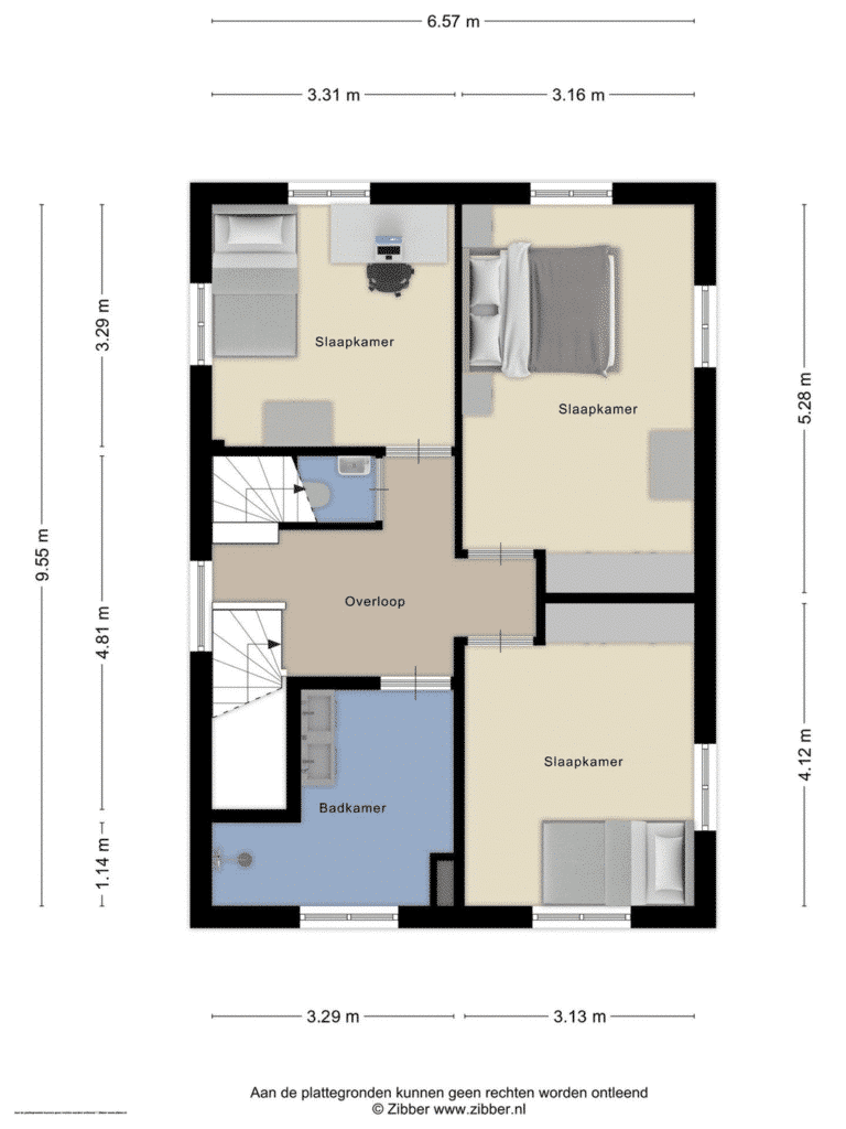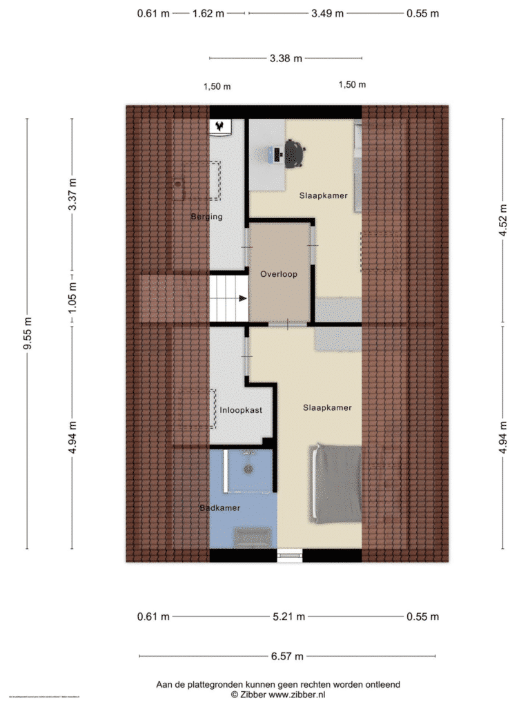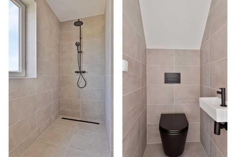 Tweede verdieping: Twee slaapkamers waarvan 1 toegang heeft tot een kleedruimte en eigen badkamer met douche en wastafel. Technische ruimte met opstelling warmtepomp, boiler, mechanische ventilatie en omvormer zonnepanelen.