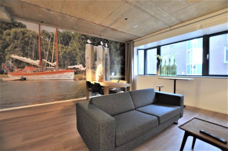 BG tot en met 4e etage; 2- en 3-kamer appartementen variërend in oppervlaktes van 50 tot 99m2. Alle appartementen zijn voorzien van eigen intercom en met smaak en luxe ingericht v.v. kwalitatieve vloeren, airconditioning, design keuken v.v. vaatwasser, koel/vrieskast en inductie-kookplaat. De slaapkamers zijn voorzien van een tweetal boxspring bedden (afmeting 200 bij 90 cm) welke voldoen aan hoge eisen. Alle slaapkamers zijn tevens v.v. flatscreen smart tv's. De badkamers zijn uitgevoerd met bad of douche, wastafel en toilet, gedeeltelijk betegeld. Een inpandige berging is v.v. een wasmachine/droger combinatie en gebruikelijke schoonmaakspullen. De woonkamer is modern en ook weer smaakvol ingericht. Een ruim bemeten zithoek met flatscreen tv, aparte eethoek en losse verlichting.