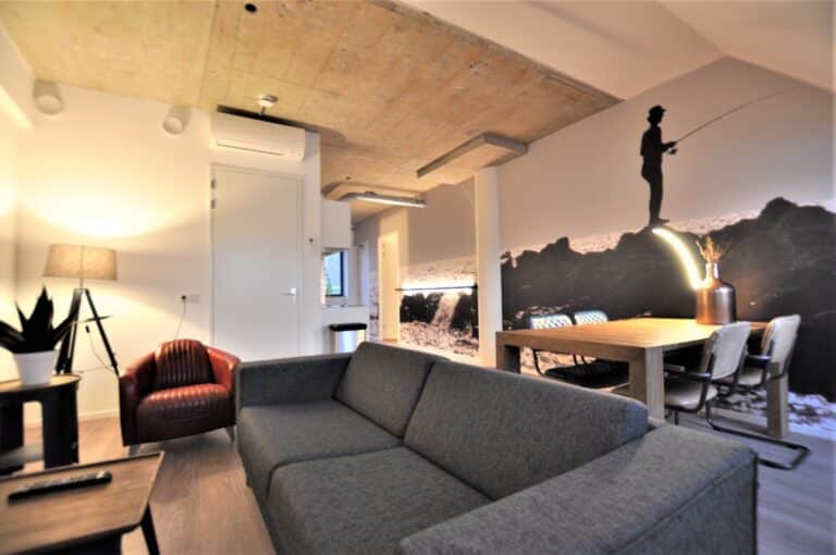BG tot en met 4e etage; 2- en 3-kamer appartementen variërend in oppervlaktes van 50 tot 99m2. Alle appartementen zijn voorzien van eigen intercom en met smaak en luxe ingericht v.v. kwalitatieve vloeren, airconditioning, design keuken v.v. vaatwasser, koel/vrieskast en inductie-kookplaat. De slaapkamers zijn voorzien van een tweetal boxspring bedden (afmeting 200 bij 90 cm) welke voldoen aan hoge eisen. Alle slaapkamers zijn tevens v.v. flatscreen smart tv's. De badkamers zijn uitgevoerd met bad of douche, wastafel en toilet, gedeeltelijk betegeld. Een inpandige berging is v.v. een wasmachine/droger combinatie en gebruikelijke schoonmaakspullen. De woonkamer is modern en ook weer smaakvol ingericht. Een ruim bemeten zithoek met flatscreen tv, aparte eethoek en losse verlichting.