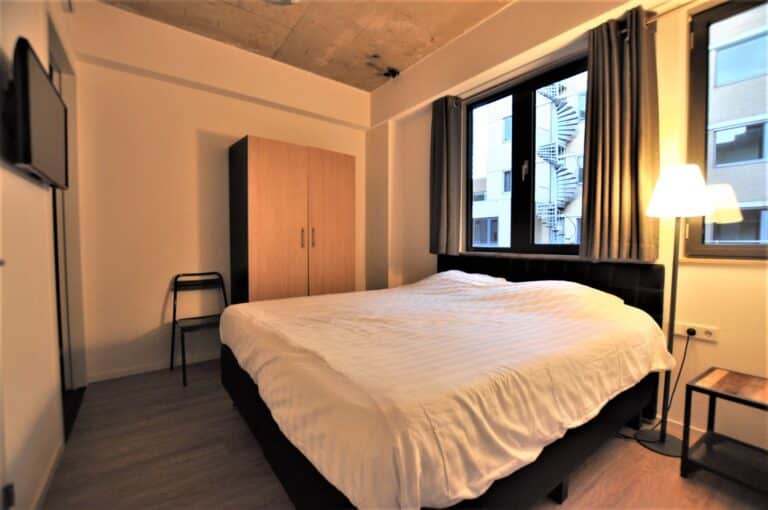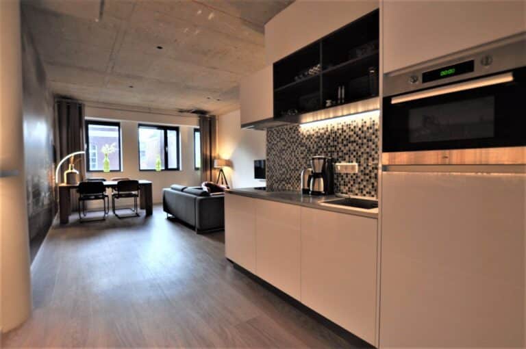 BG tot en met 4e etage; 2- en 3-kamer appartementen variërend in oppervlaktes van 50 tot 99m2. Alle appartementen zijn voorzien van eigen intercom en met smaak en luxe ingericht v.v. kwalitatieve vloeren, airconditioning, design keuken v.v. vaatwasser, koel/vrieskast en inductie-kookplaat. De slaapkamers zijn voorzien van een tweetal boxspring bedden (afmeting 200 bij 90 cm) welke voldoen aan hoge eisen. Alle slaapkamers zijn tevens v.v. flatscreen smart tv's. De badkamers zijn uitgevoerd met bad of douche, wastafel en toilet, gedeeltelijk betegeld. Een inpandige berging is v.v. een wasmachine/droger combinatie. De woonkamer is modern en ook weer smaakvol ingericht. Een ruim bemeten zithoek met flatscreen tv, aparte eethoek en losse verlichting.