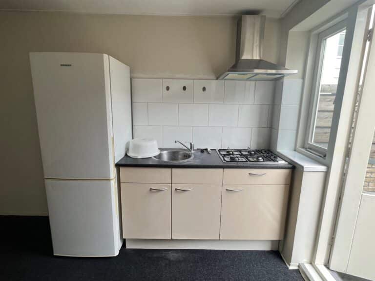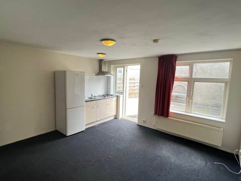 Deze studio van ca. 25 m2 ligt op de 1e verdieping aan de achterzijde en beschikt over een groot dakterras. De kamer is voorzien van een eigen keukenblok. De nette badkamer met douche, toilet en wastafel wordt gedeeld met 1 medebewoonster. Op de begane grond is tevens een fietsenberging aanwezig en een opstelplaats met witgoedapparatuur.