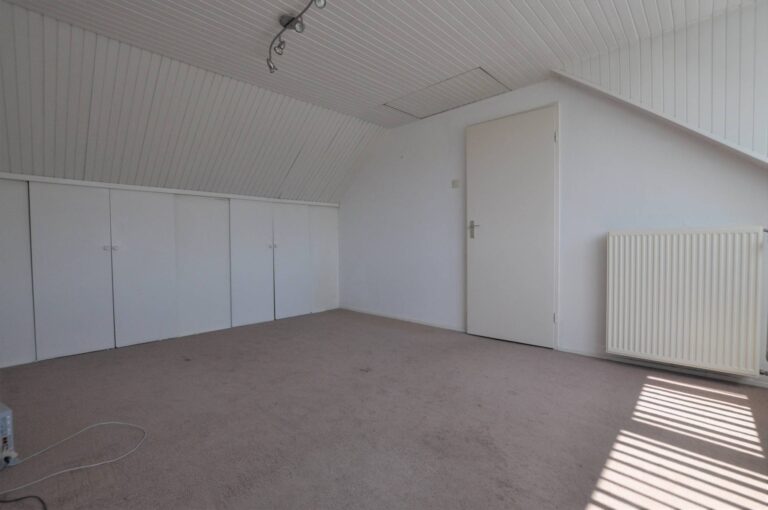 De tweede etage beschikt over een ruime voorzolder met de opstelling van de CV-ketel en aansluitingen voor wasapparatuur. Daarnaast is er een vierde, zeer ruime slaapkamer met vloerbedekking en extra bergruimte achter de knieschotten.