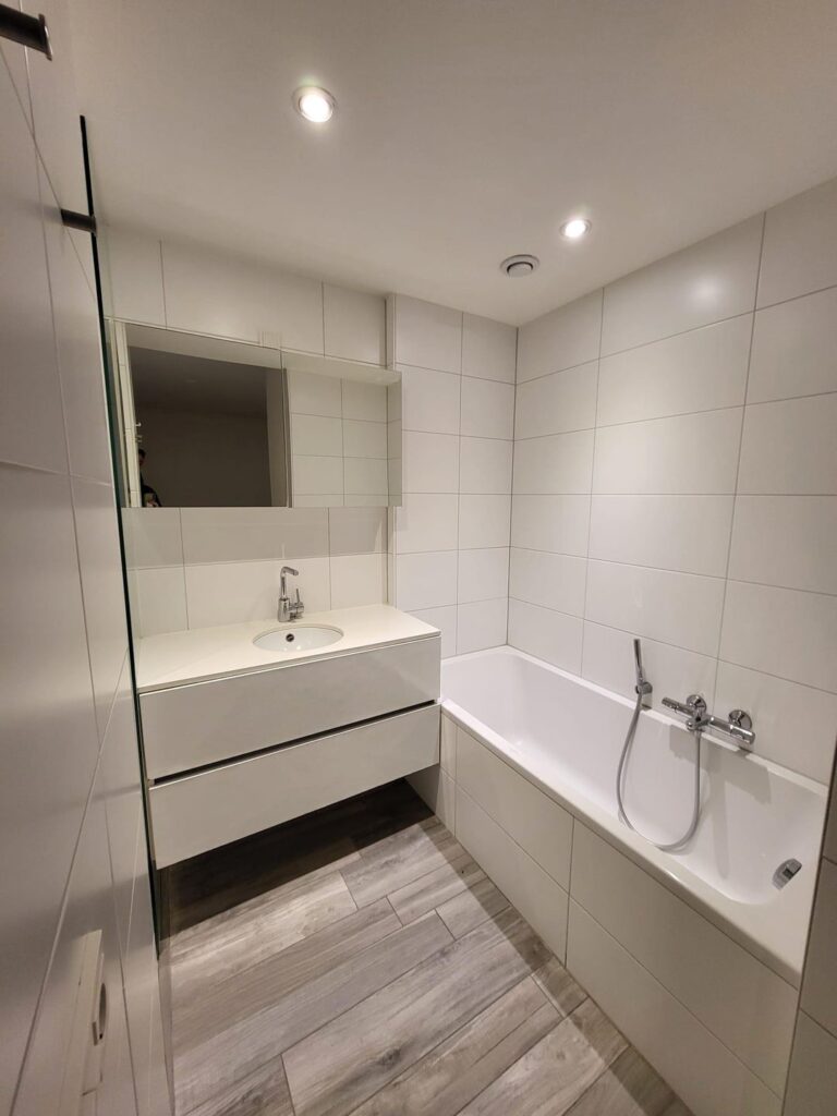 Entree/hal (ca. 5 m²), separaat toilet (ca. 1,5 m²) en wasruimte/berging (ca. 1,8 m²). Moderne badkamer (ca. 3,8 m²) voorzien van ligbad, douche en wastafel. Ruime woon-/eetkamer (ca. 20 m²) met veel lichtinval.