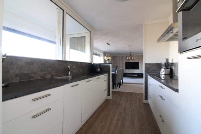 De aangesloten keuken is goed onderhouden en beschikt over diverse apparatuur, waaronder een vaatwasser, 4-pits inductie kookplaat met afzuifkap, combimagnetron en een koelkast. De keuken kent verder een moderne afwerking.