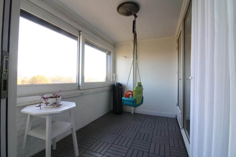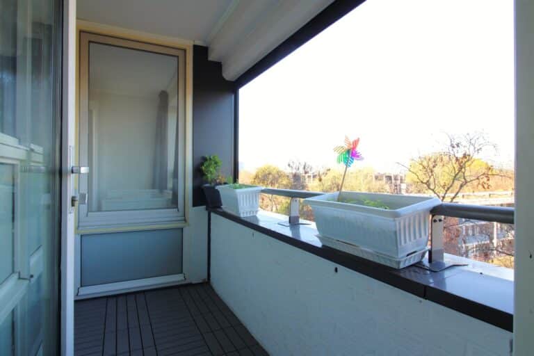 Beide balkons zijn vanuit de woonkamer te bereiken, en het balkon gericht tot het oosten is ook tevens met een schuifraam afgesloten.