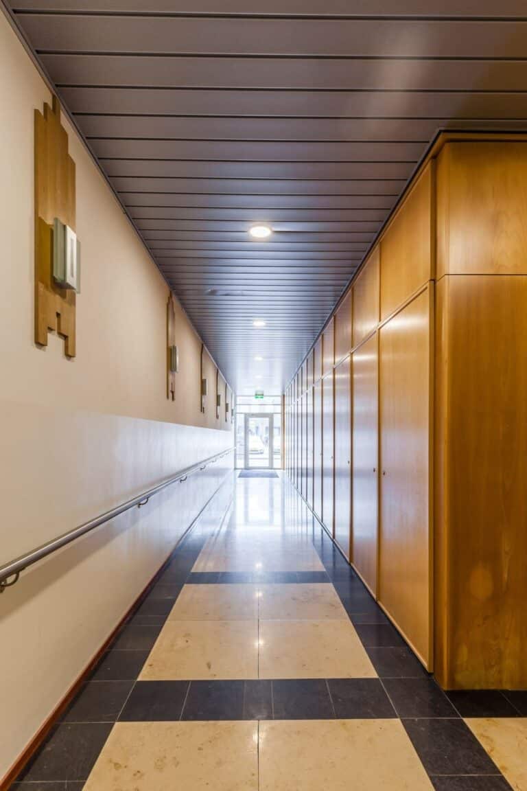 Centrale afgesloten entree met intercom, brievenbussen, lift en trappenhuis. Vanuit een portaal achter deze entree heeft u tevens toegang tot het achtergelegen terrein met berging en parkeerplaats.