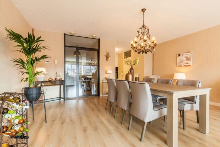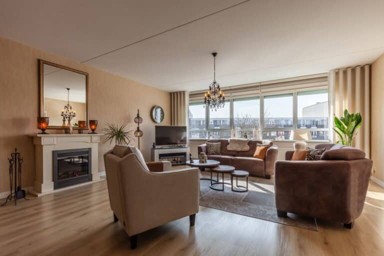 Fraaie en lichte woonkamer, ruim van opzet en ca. 55 m² groot. De woonkamer is voorzien van intercominstallatie, laminaatvloer en een sfeervolle (elektrische) haard. Vanuit de woonkamer heeft u altijd wat te zien door de ligging aan de levendige Woenselse Markt.