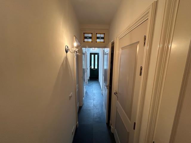 Gang met toegang tot ruime berging, woonkamer met hardstenen vloer en vloerverwarming. Er is een apart eetgedeelte met openslaande deuren naar de binnenplaats op het Westen. Moderne keuken met koelkast, vriezer, vaatwasser, oven, kookplaat, wasmachine en droger. Er zijn verschillende inbouw kasten aanwezig en een cv-ruimte. De badkamer met ligbad, toilet en aparte douche. Op de 1e etage kunt u de slaapkamer vinden (3x3.50) en vaste kast. Er is tevens een inloopkast met kastenwand. Alles ramen in het appartement zijn dubbel glas.