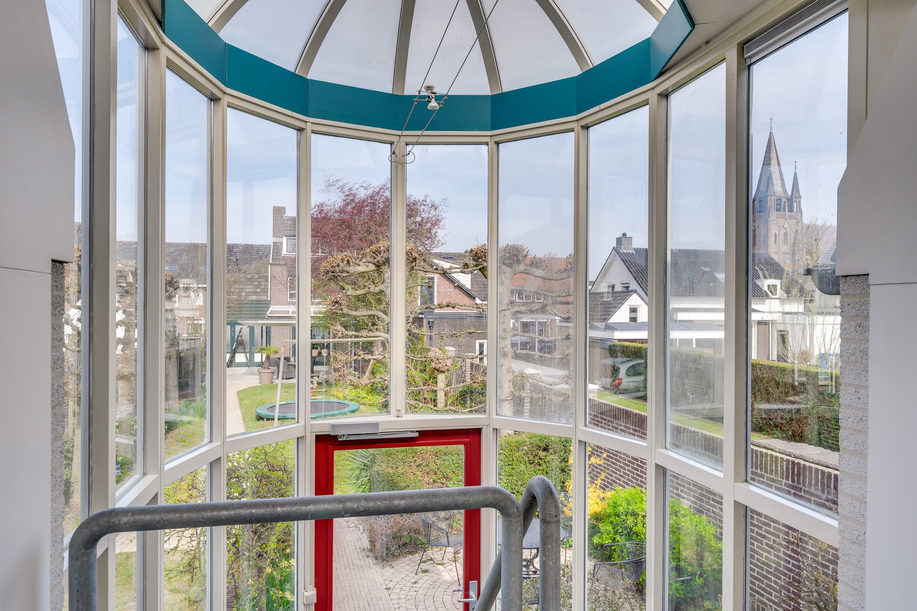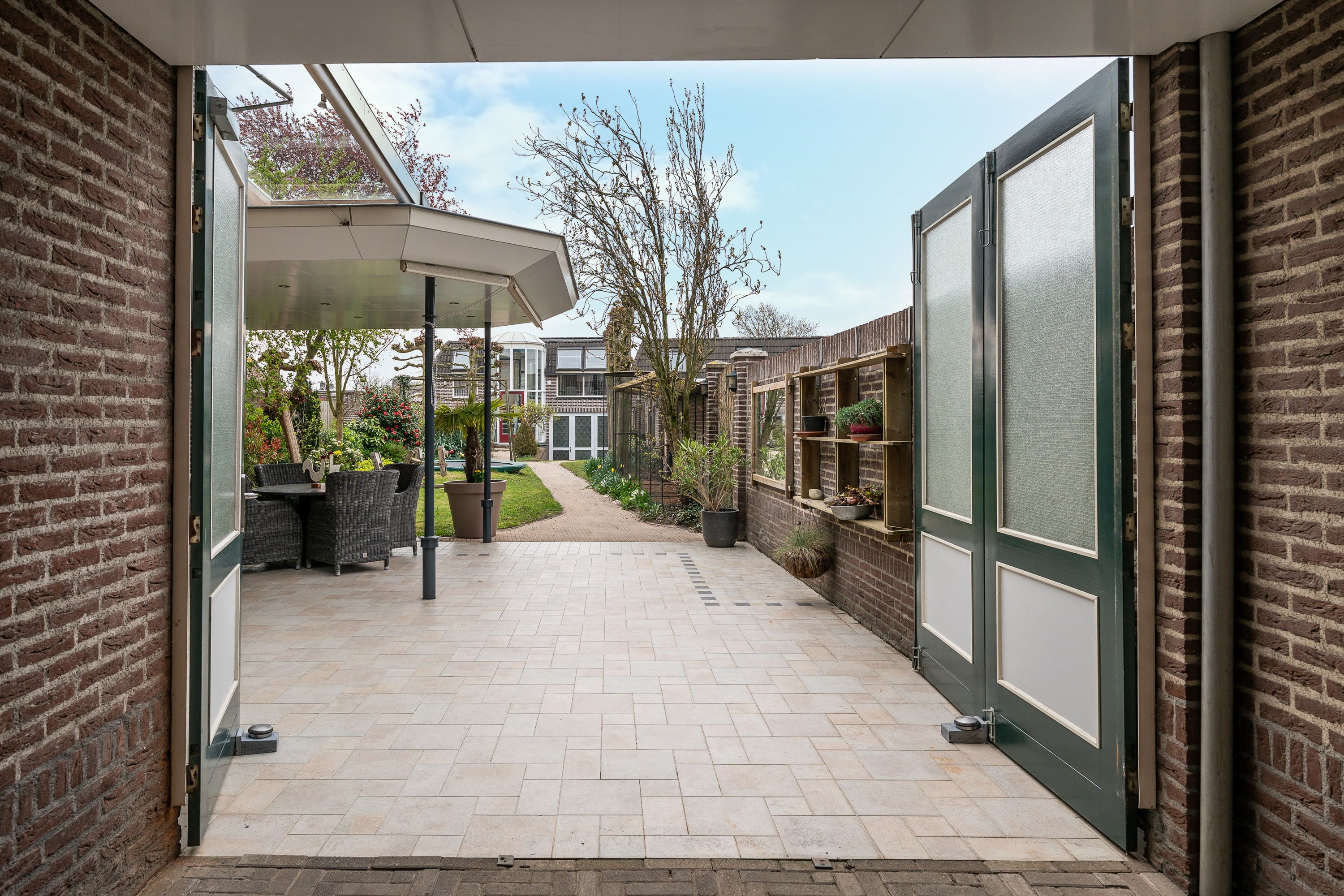 Via drie openslaande deuren bereik je de carport en de diepe oprit, met daarboven een verrassend hoge en praktische bergruimte. Hier parkeer je gemakkelijk 2 auto's op eigen terrein.