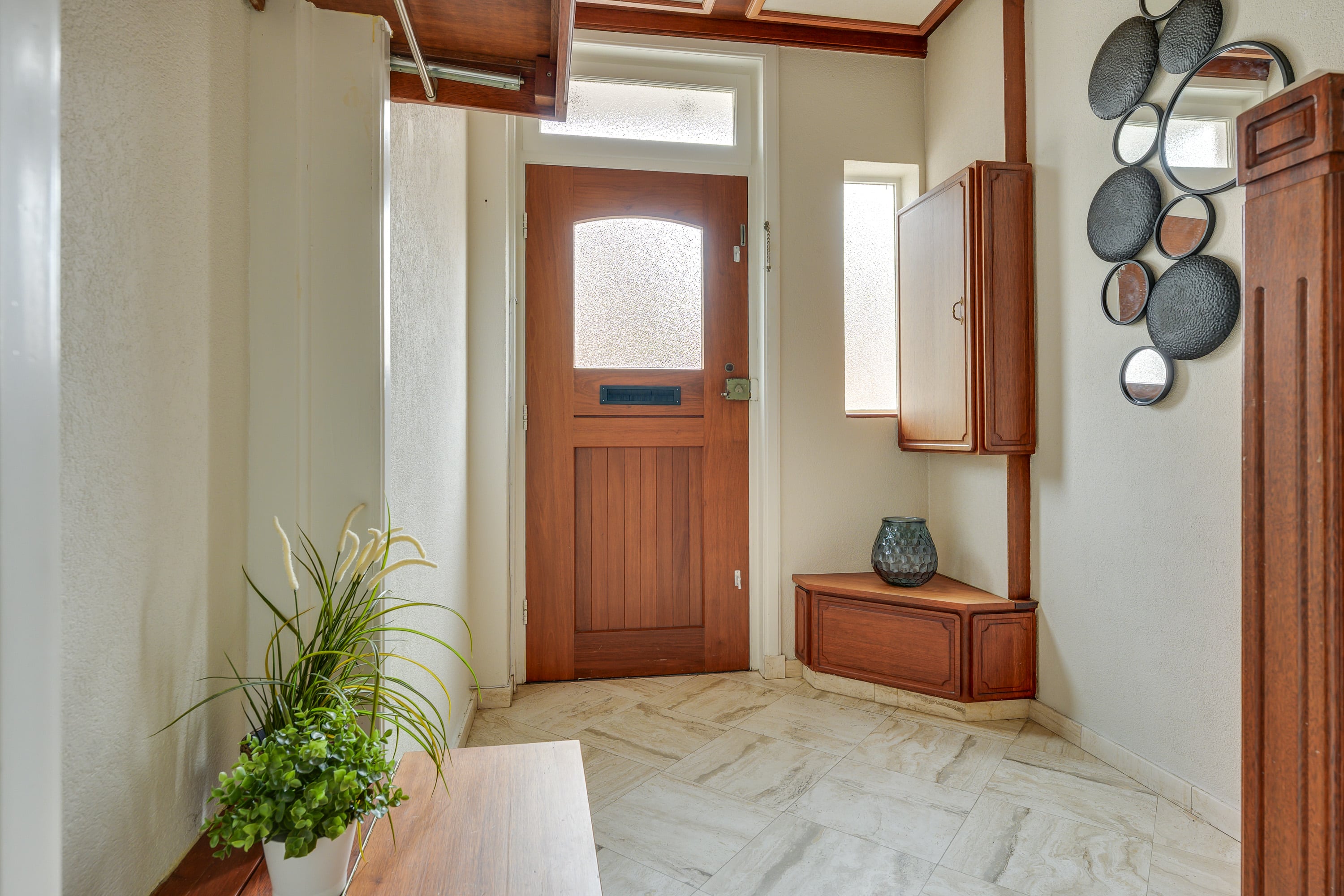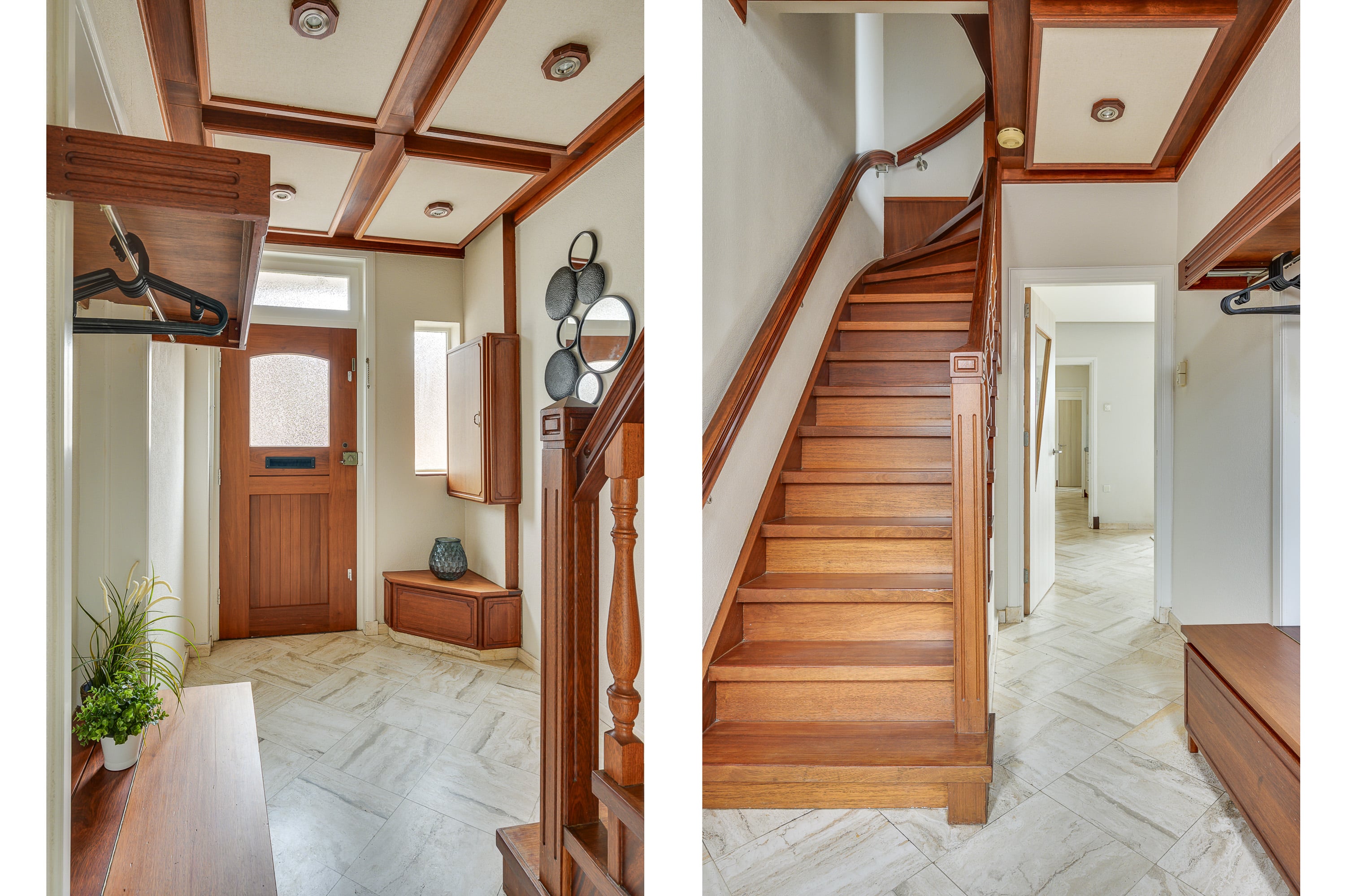 De karakteristieke overdekte entree brengt je in een stijlvolle hal met een travertin natuurstenen vloer en inbouwspots. De vernieuwde groepenkast met slimme meters en de hardhouten trap geven direct een verzorgde en solide indruk. De gehele begane grond is geïsoleerd en voorzien van vloerverwarming onder de travertin vloer, wat resulteert in een comfortabel en gelijkmatig binnenklimaat.