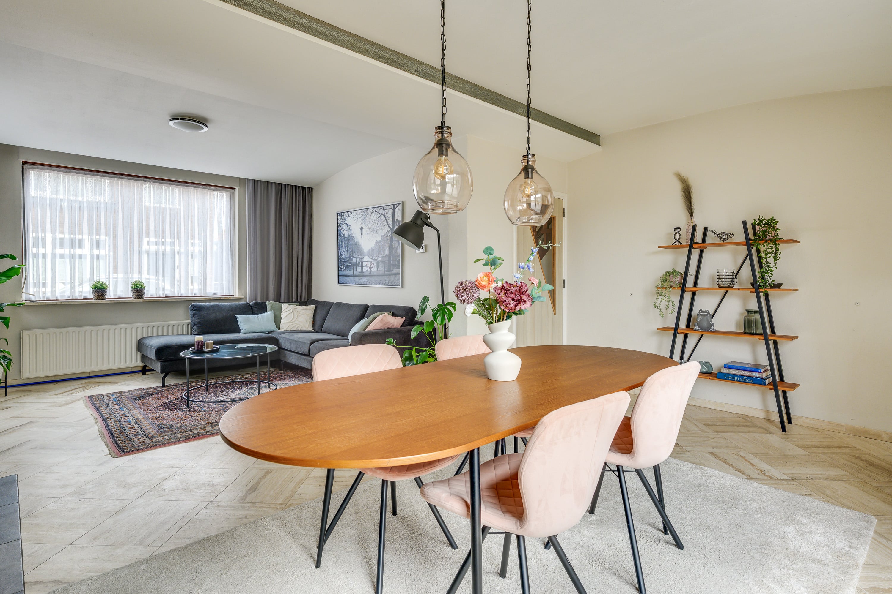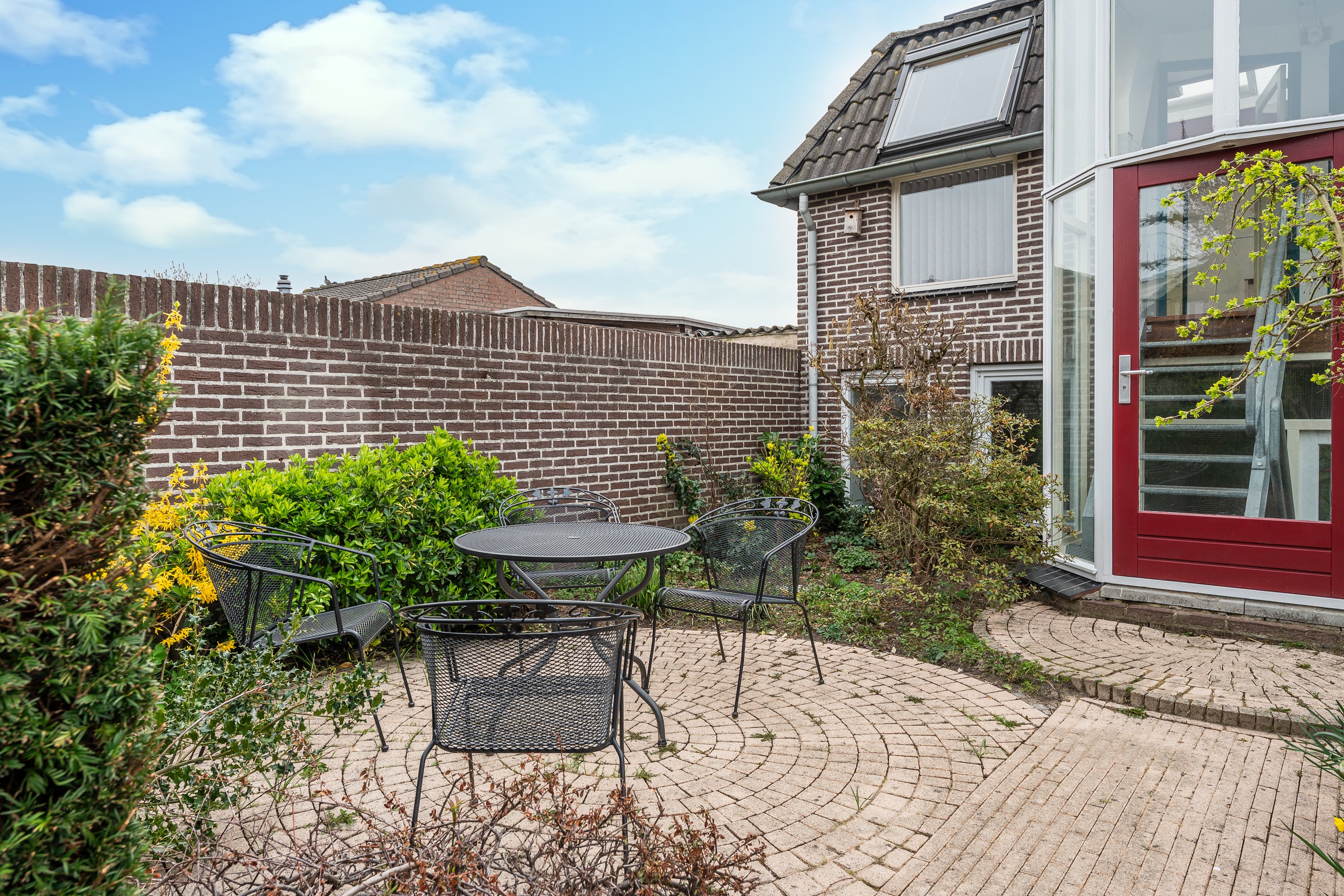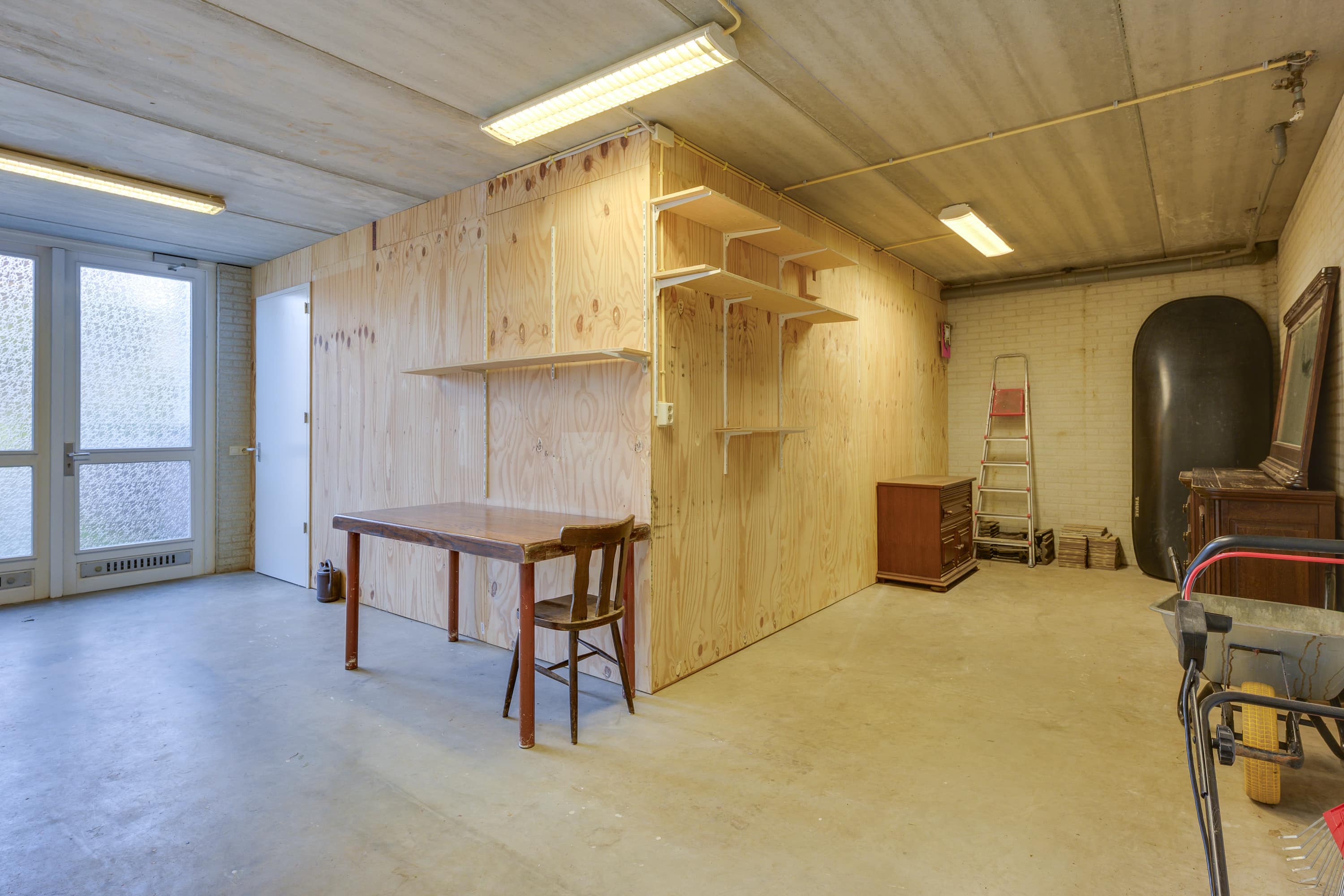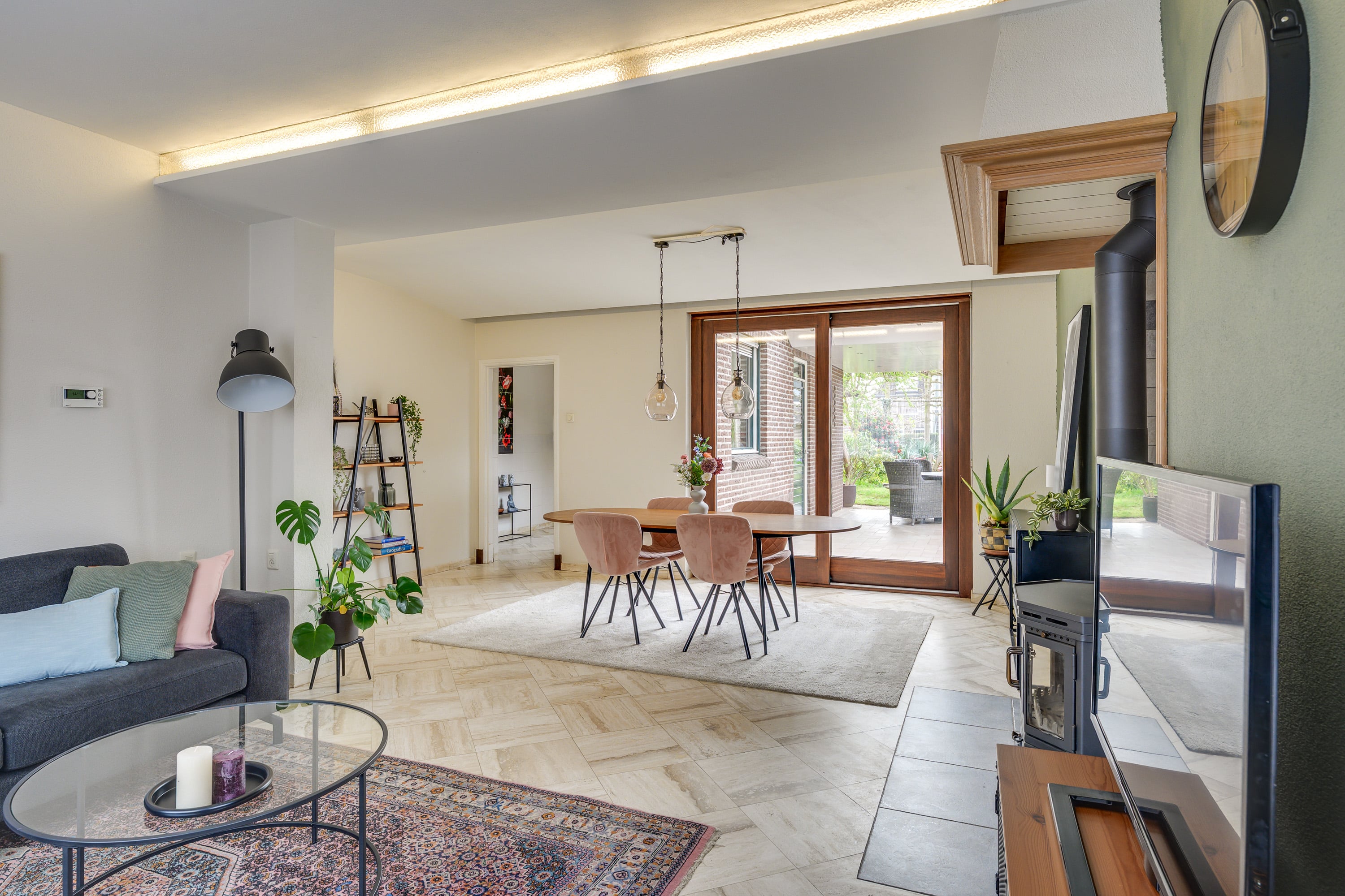 De keuken is in 2014 vernieuwd en vormt een stijlvolle leefruimte met een luxe uitstraling. Het massieve granieten werkblad springt direct in het oog en combineert prachtig met de houtlook kasten. Hier kook je met uitzicht op de tuin. De keuken is compleet uitgerust met een inductiekookplaat met afzuigkap, stoomoven, combi oven-magnetron en twee koelkasten. De vaatwasser en Quooker zijn in 2021 vernieuwd. De ruime, verdiepte trappenkast is volledig betegeld en biedt verrassend veel opbergruimte. Aansluitend ligt de achterhal met toegang tot de tuin en een volledig betegelde bijkeuken met gootsteen en aansluitingen voor wasmachine en droger. Aansluitend vind je het moderne, vernieuwde toilet met een wandcloset, fonteintje en draairaam.
