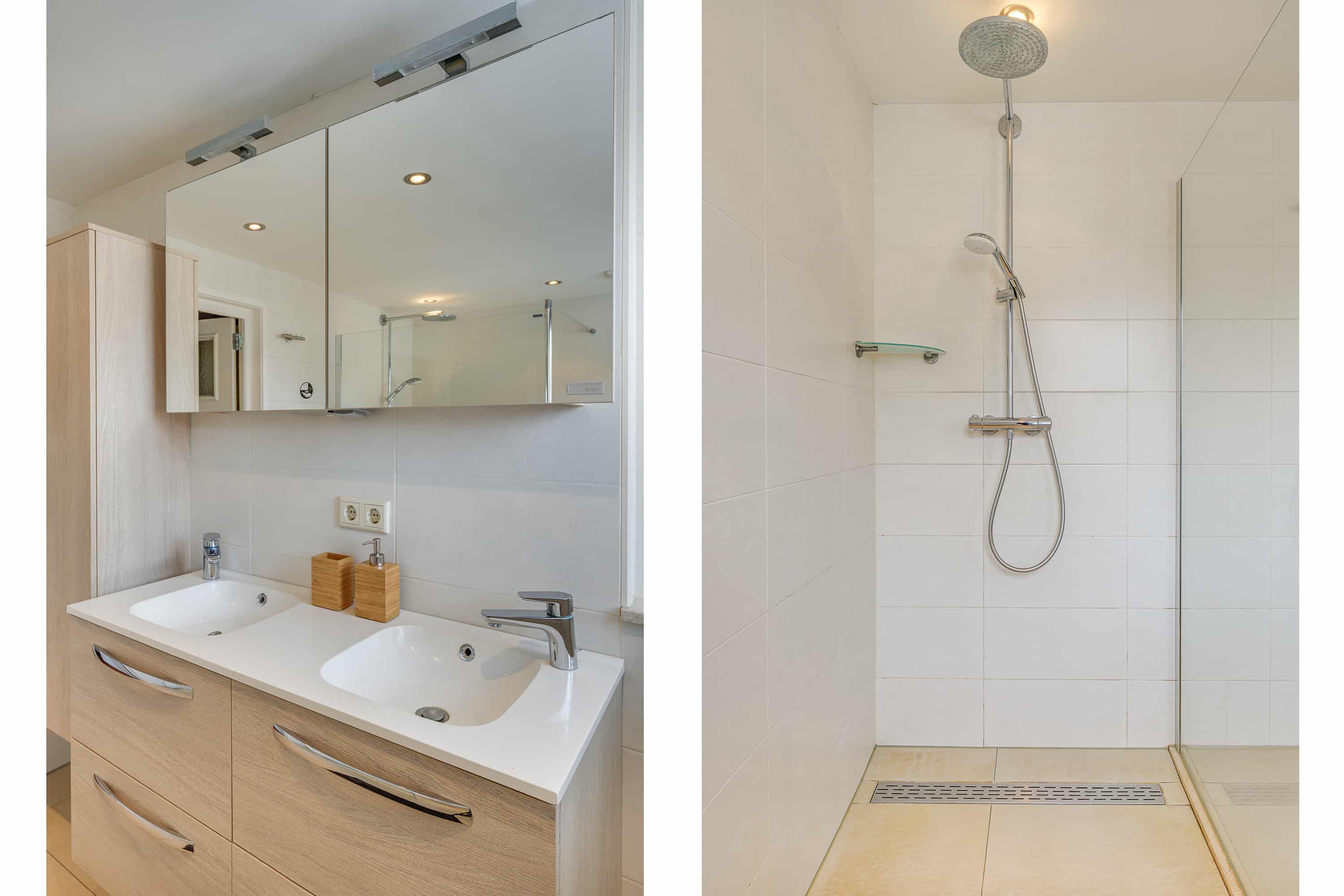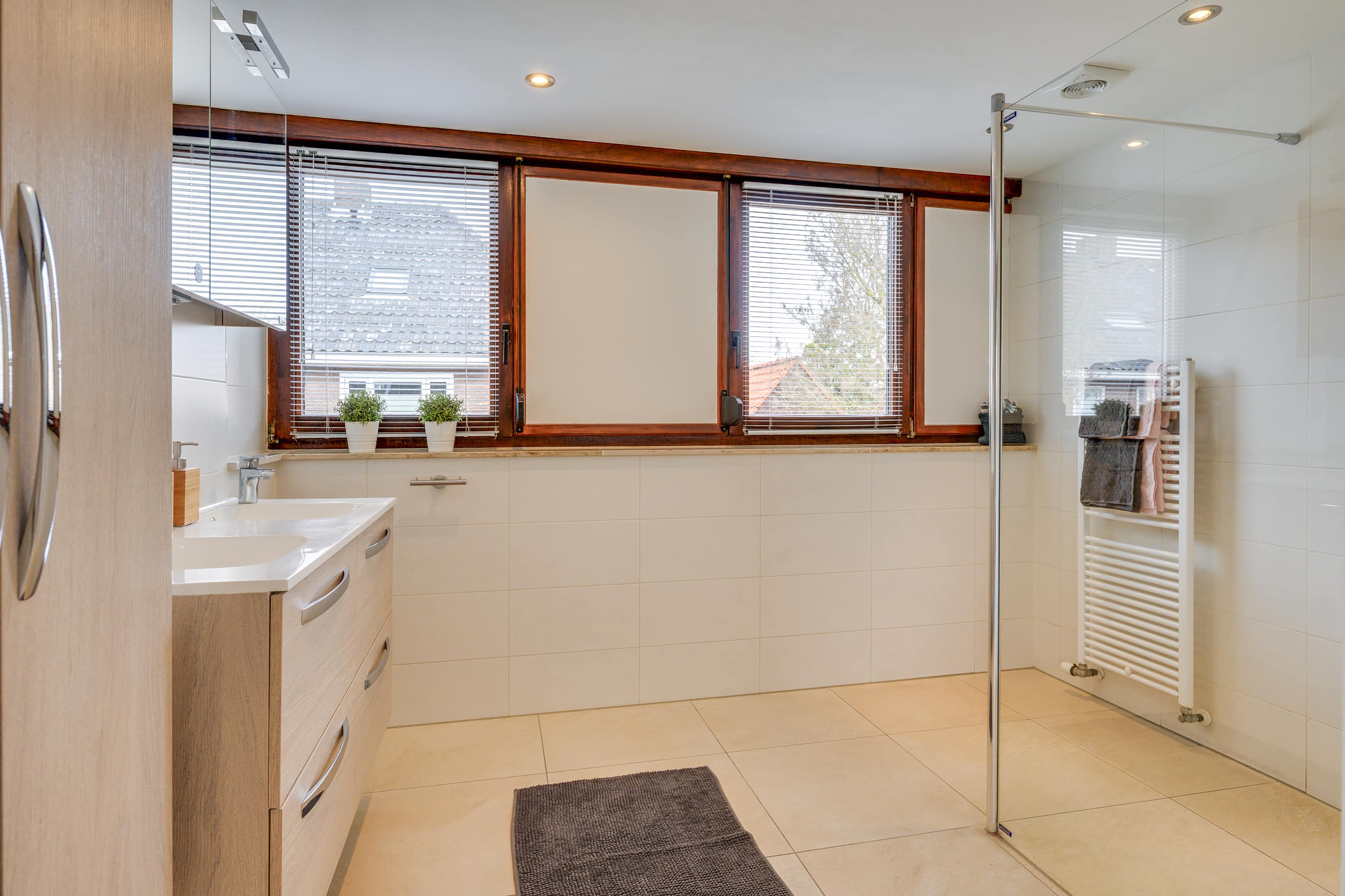De badkamer is erg ruim, vernieuwd in 2014 en compleet uitgevoerd met een dubbel wastafelmeubel, spiegelkast met verlichting, ruime inloopdouche, designradiator, mechanische ventilatie en vloerverwarming.