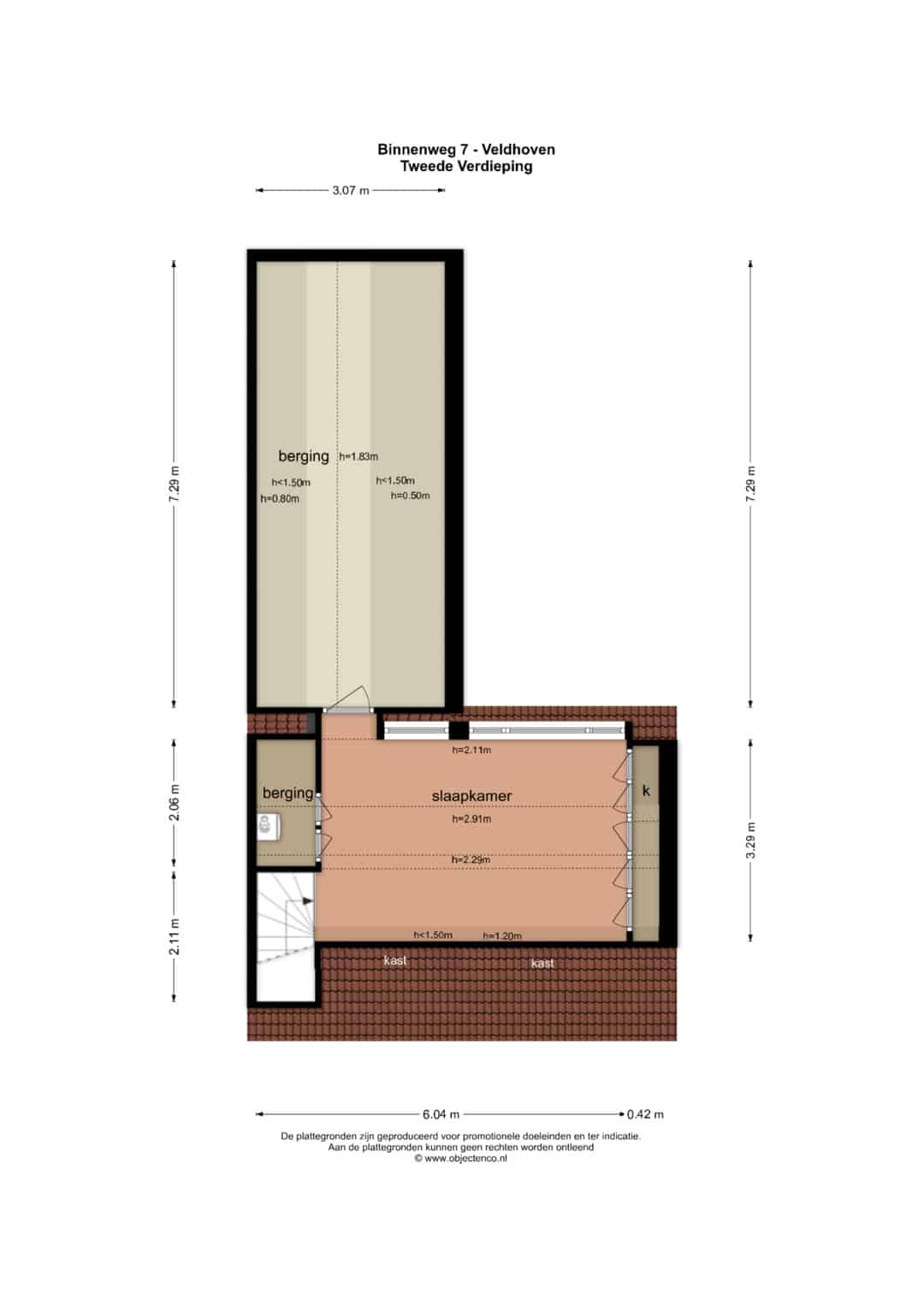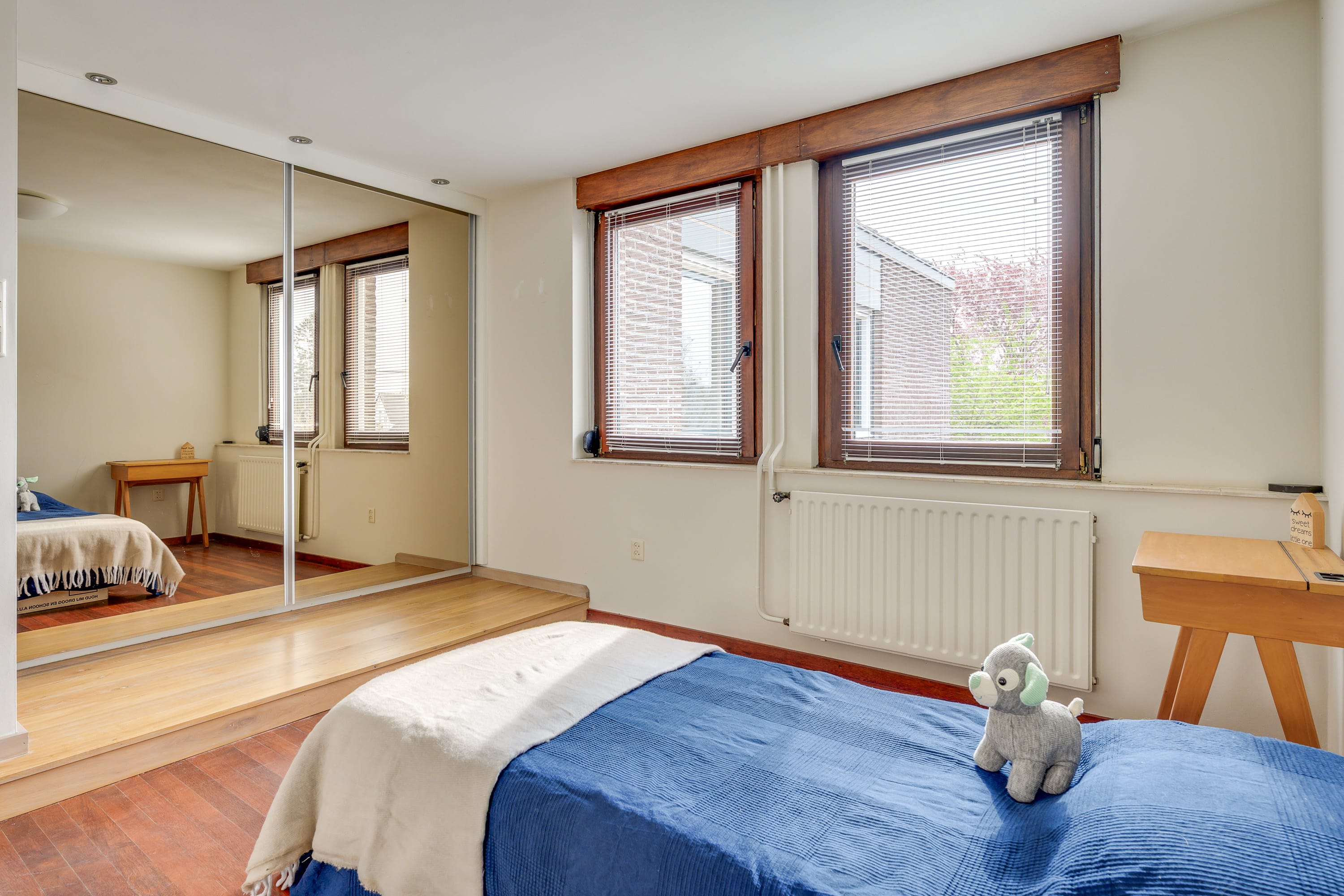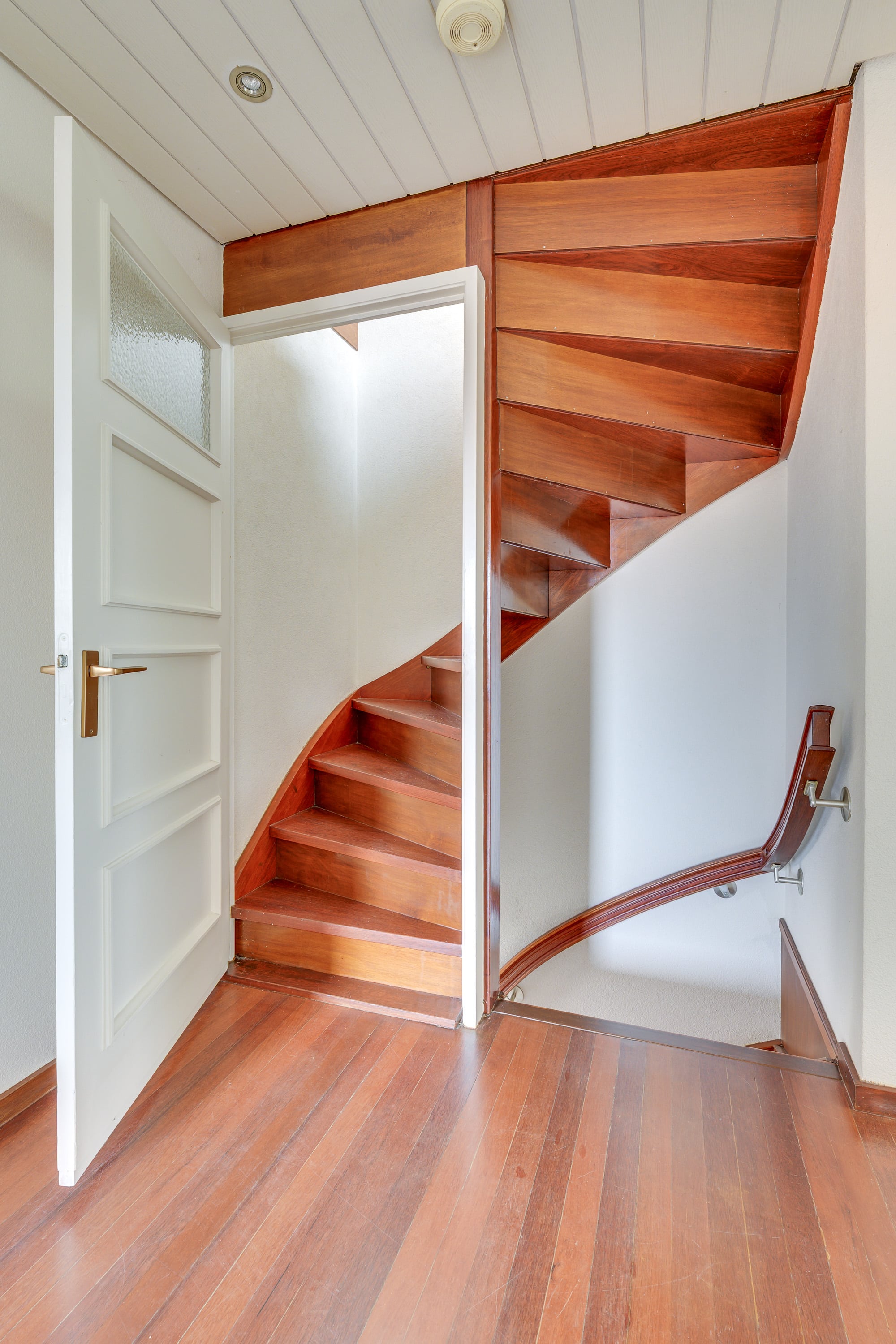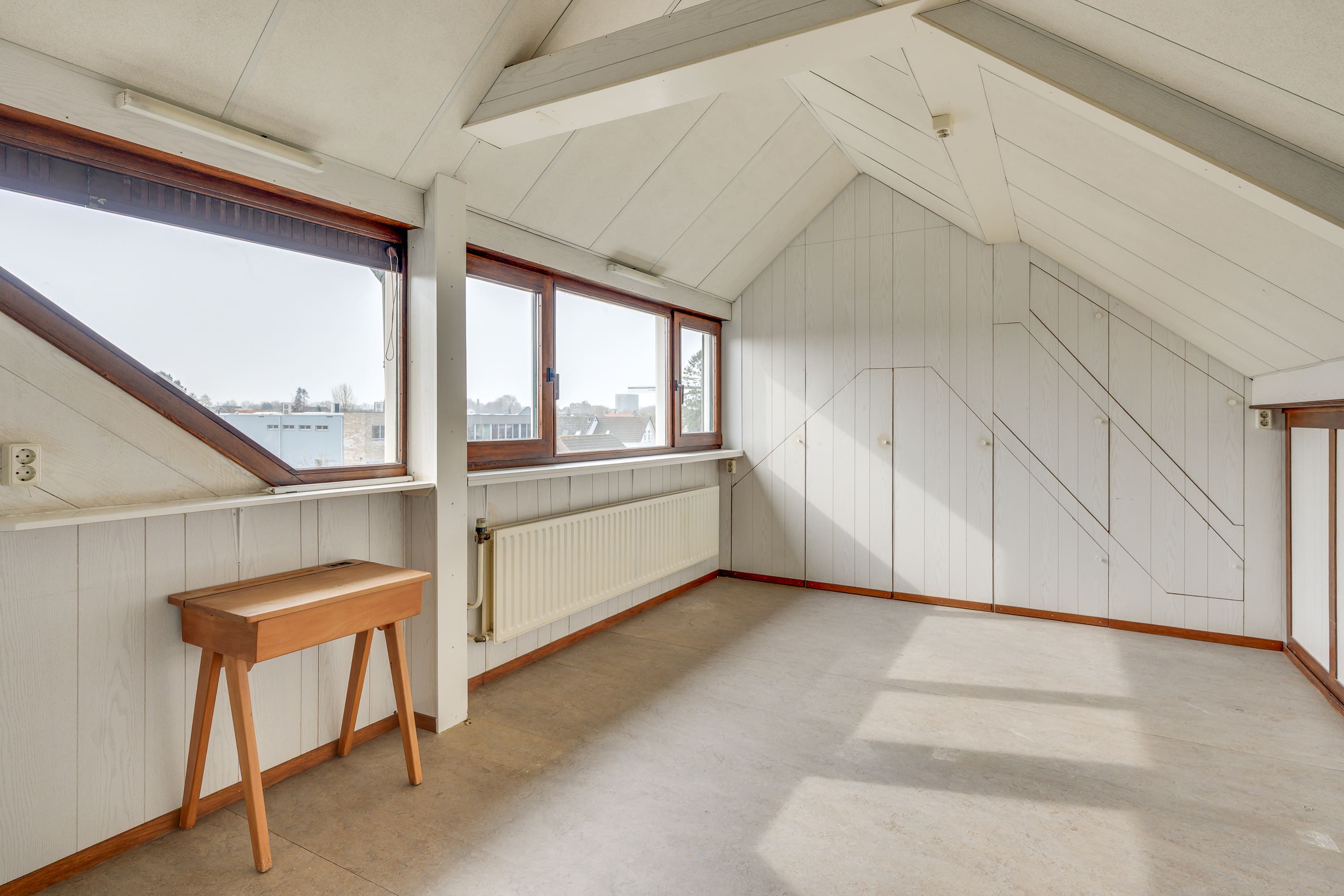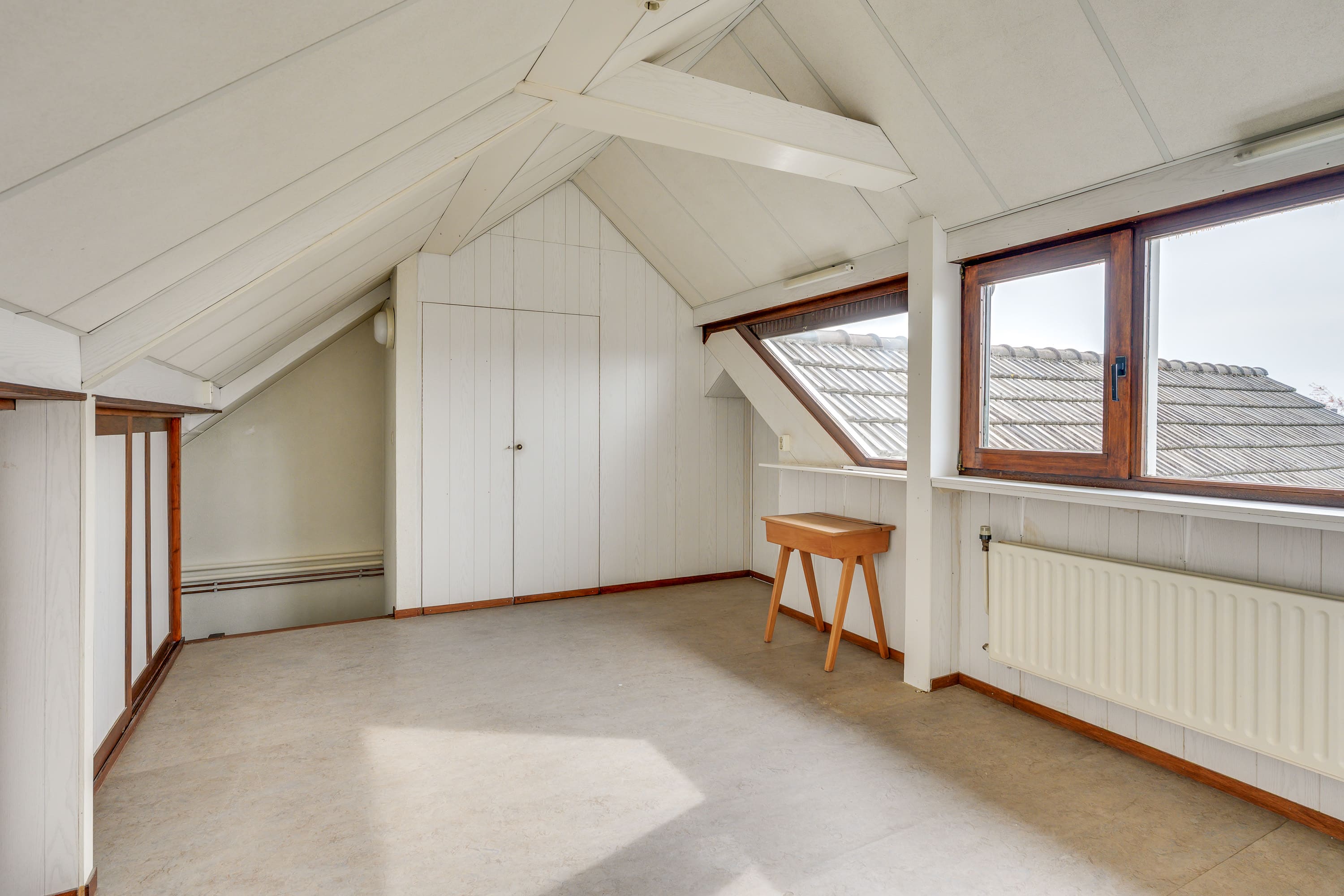 De tweede verdieping is bereikbaar met een dichte trap. Hier bevindt zich een vierde slaapkamer met een opvallend vormgegeven inbouwkast. Onder de schuine kap loopt over de volle breedte bergruimte. Achterin ligt een diepe bergzolder. In de aparte CV-ruimte staat de ketel uit 2009 waarvan het binnenwerk in 2017 is vervangen. Er is hier bovendien ruimte voor extra witgoed.