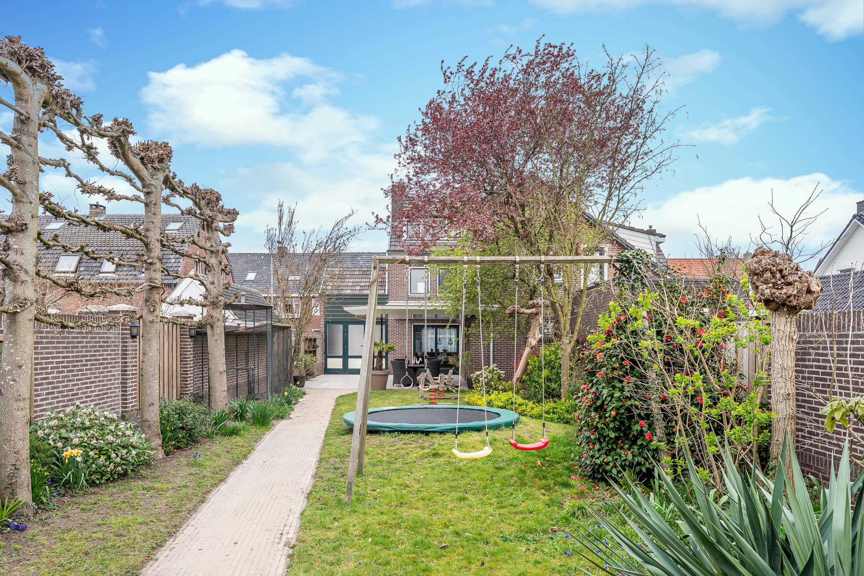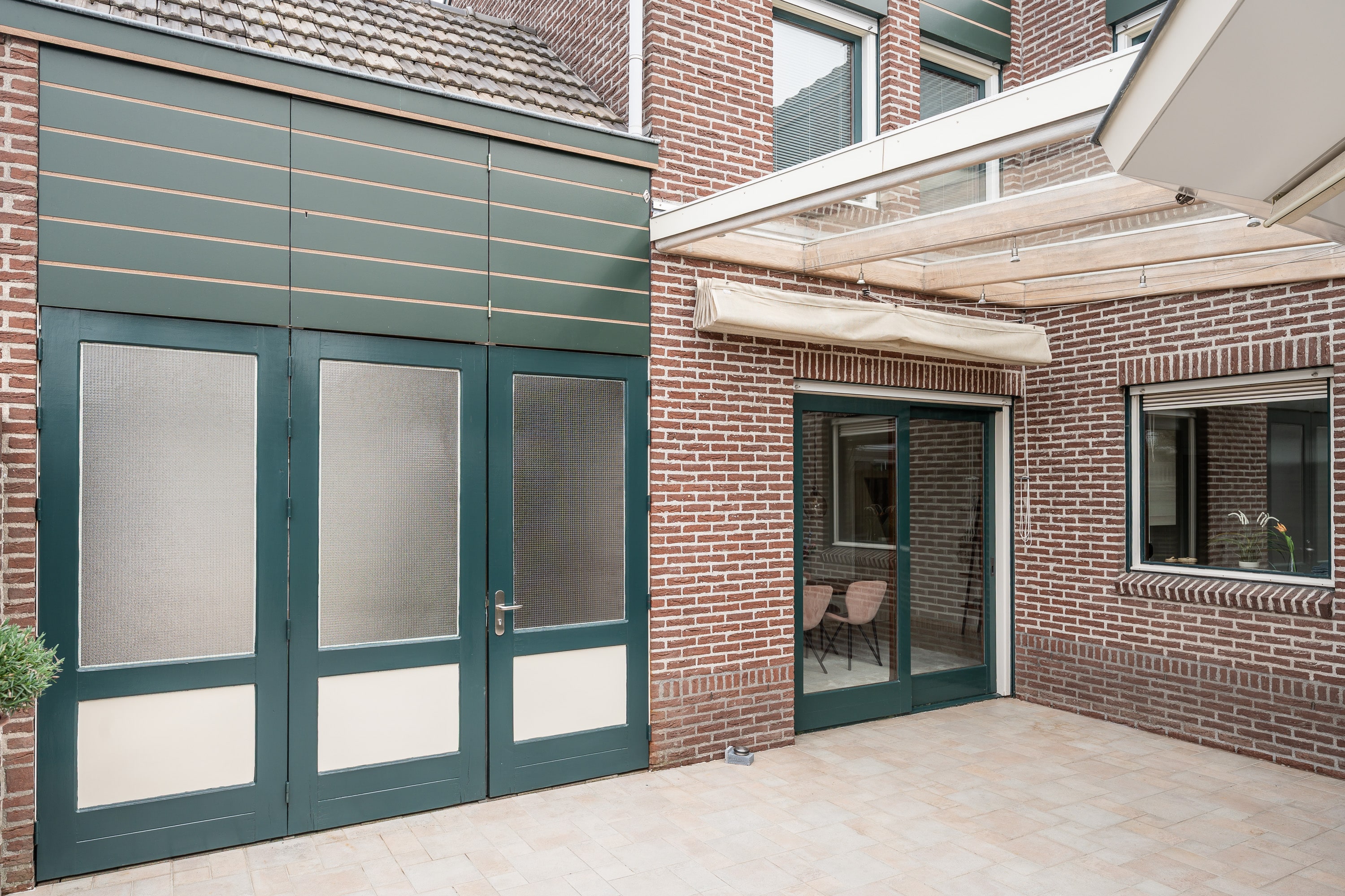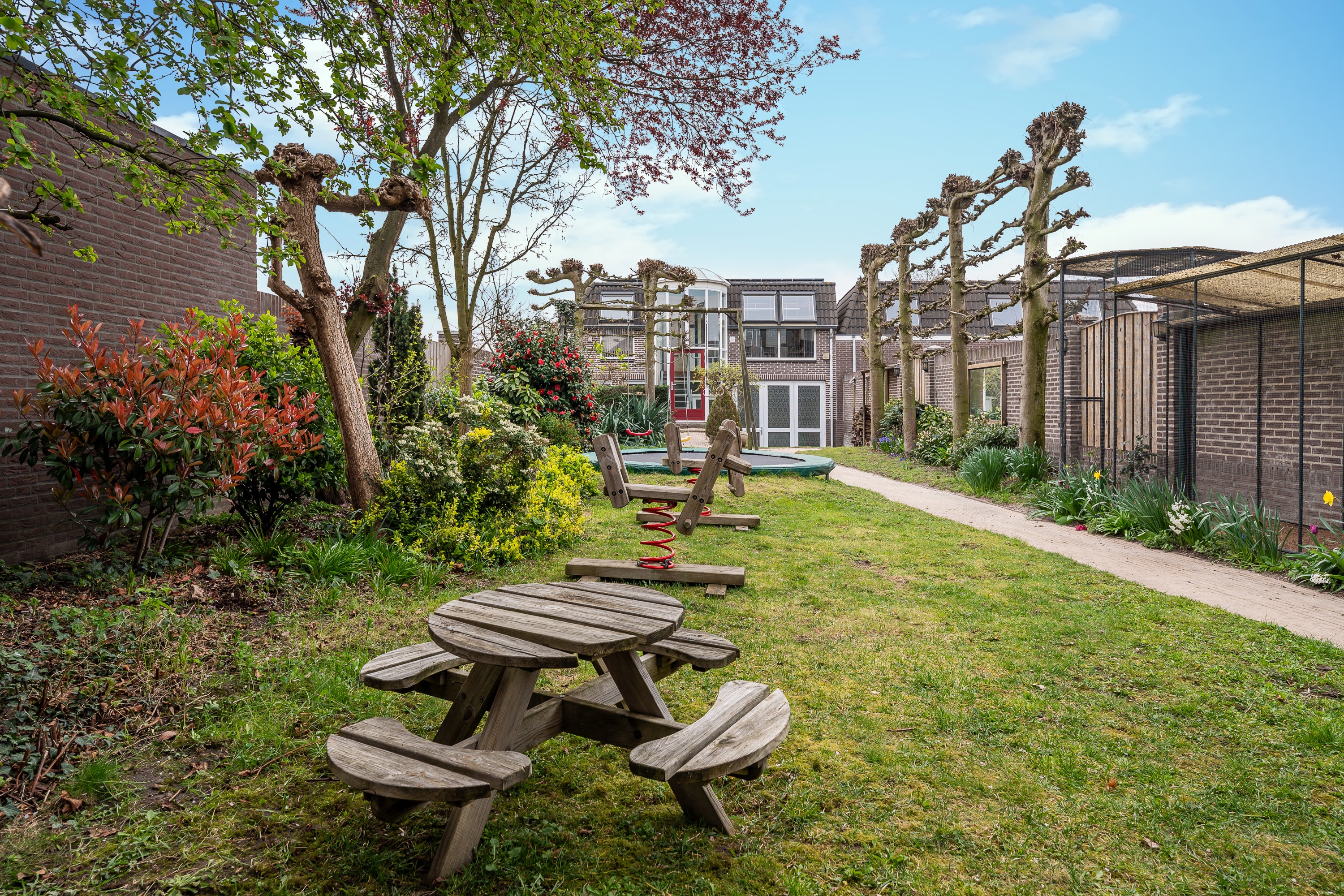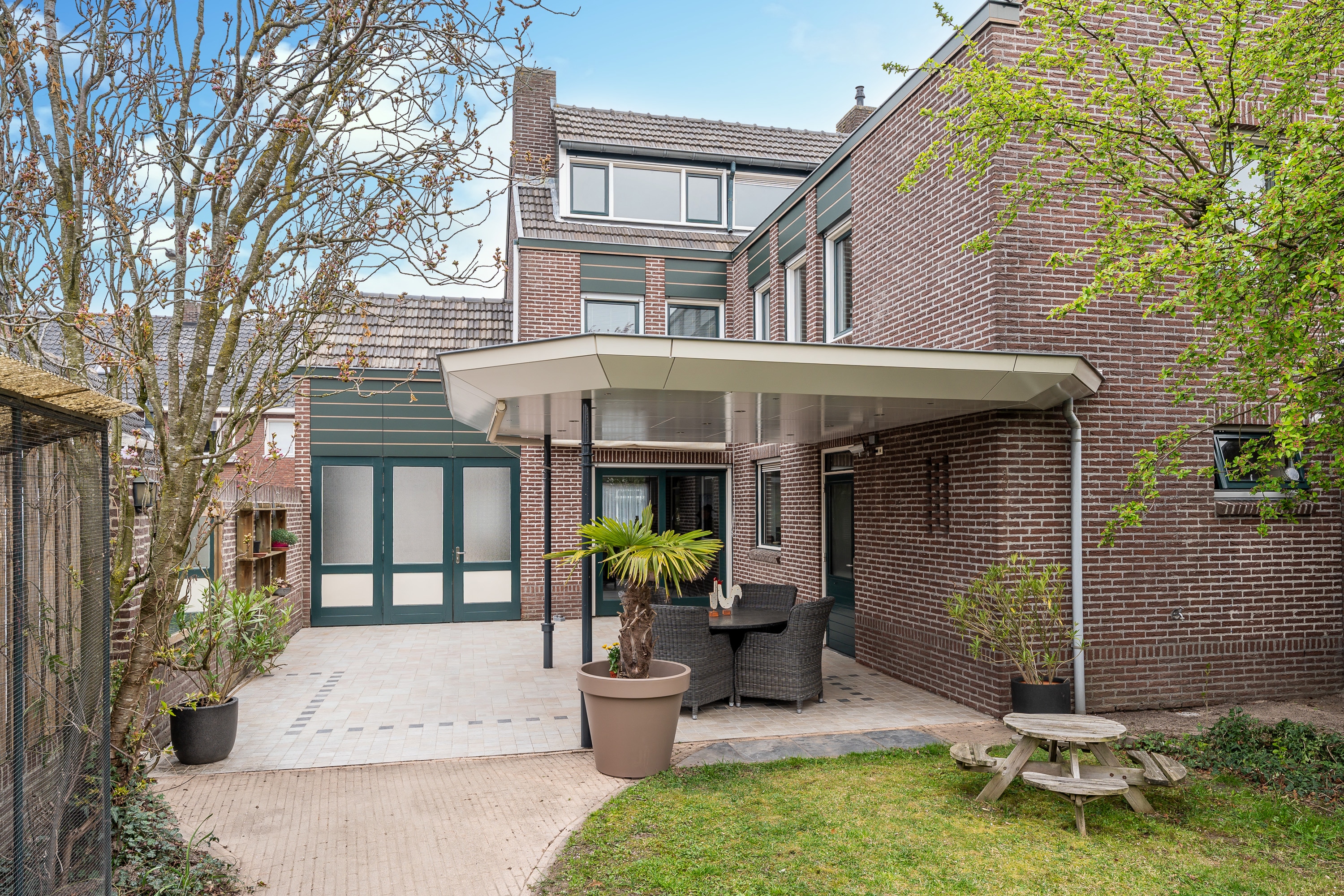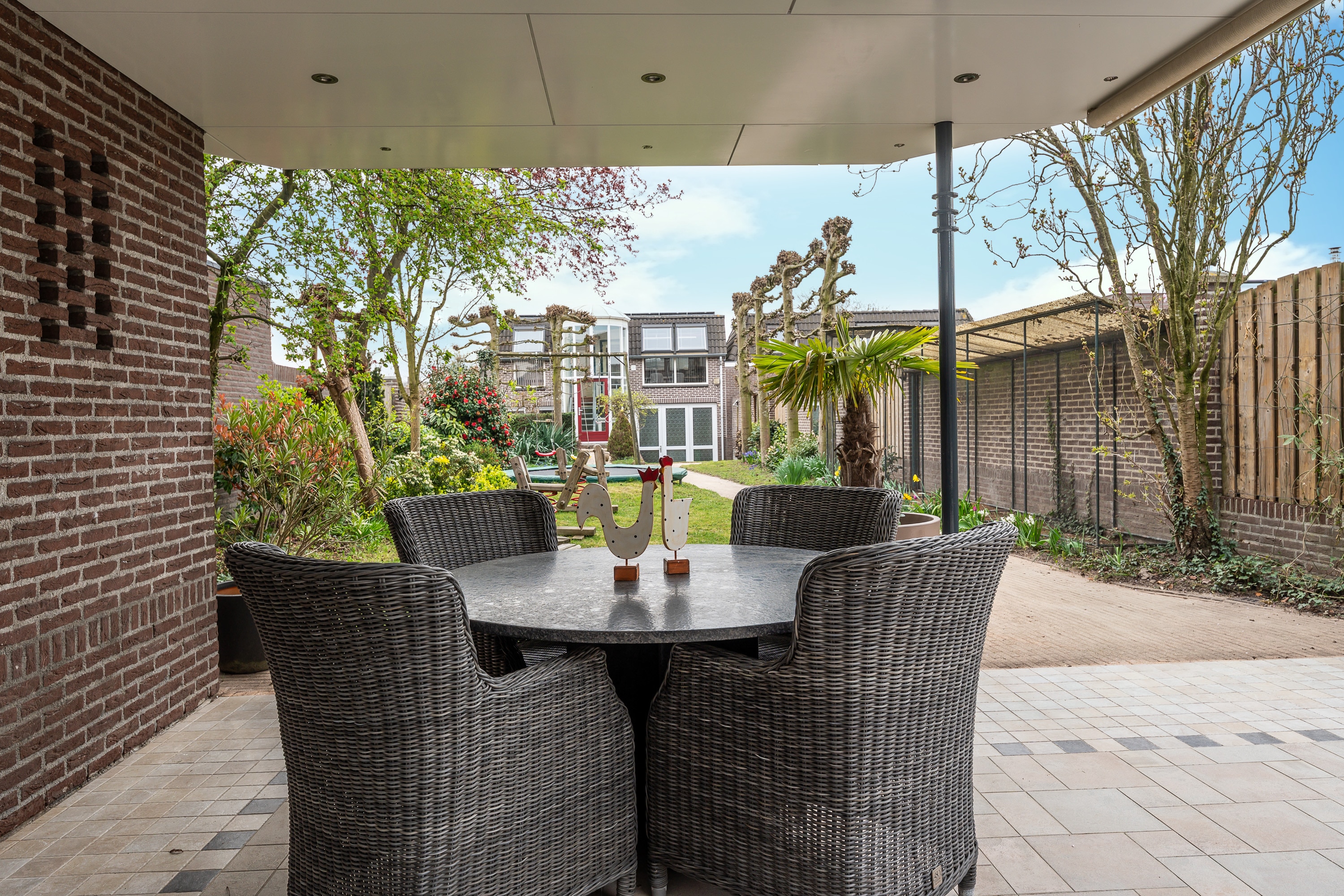De achtertuin is gelegen op het zuidoosten en strekt zich indrukwekkend diep uit over het perceel en geeft meteen een gevoel van ruimte en vrijheid. Direct aan de woning ligt een royaal terras met overkapping, waardoor je al vroeg in het voorjaar en tot laat in het najaar comfortabel buiten zit. In 2014 is deze overkapping gerealiseerd en voorzien van inbouwspots. Verder vind je hier een buitenkraan aan de achterzijde van de woning.