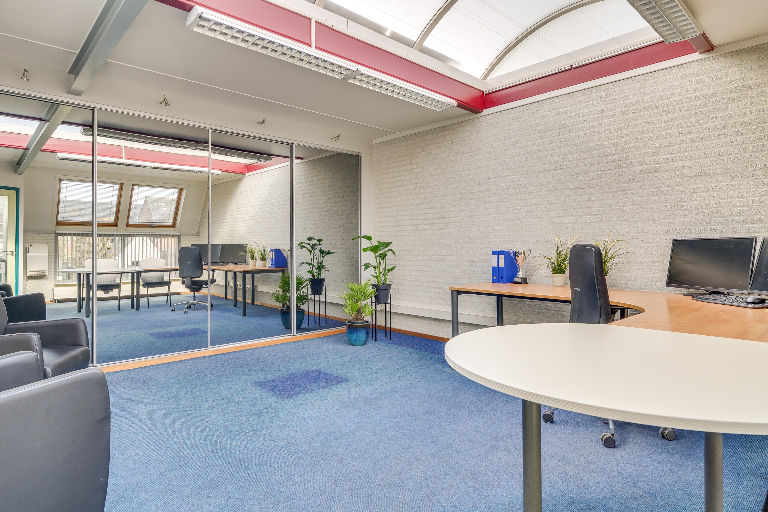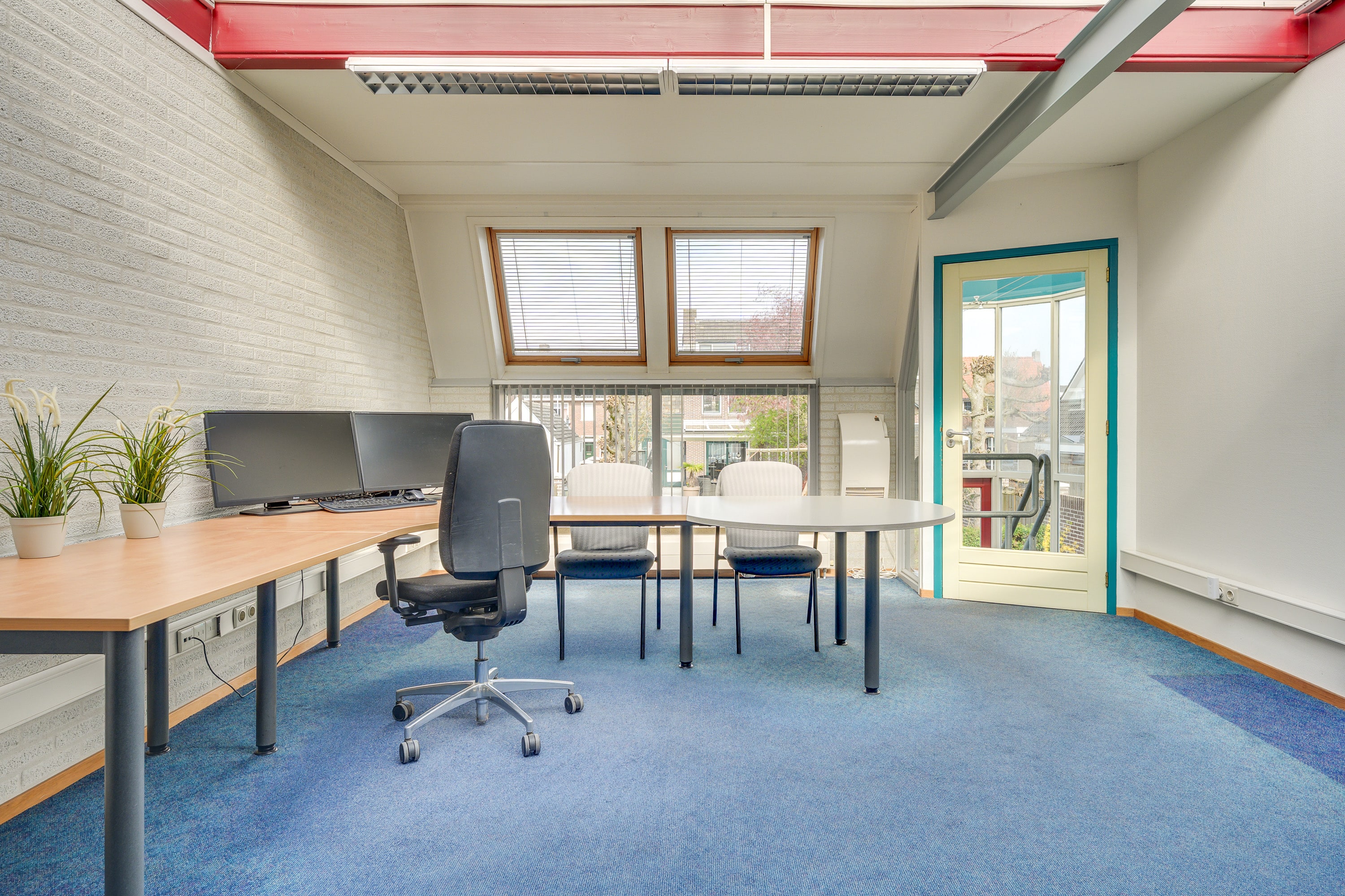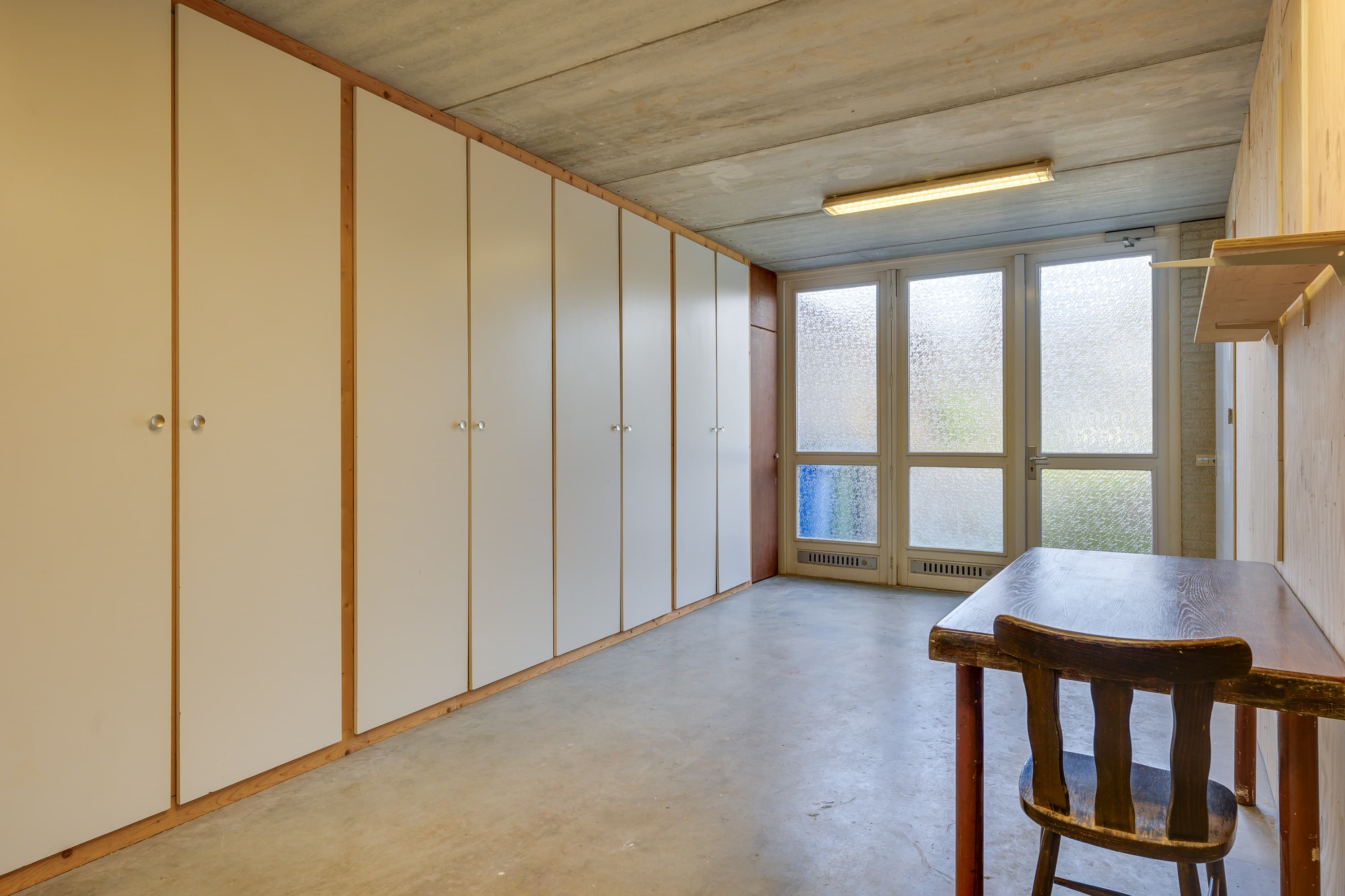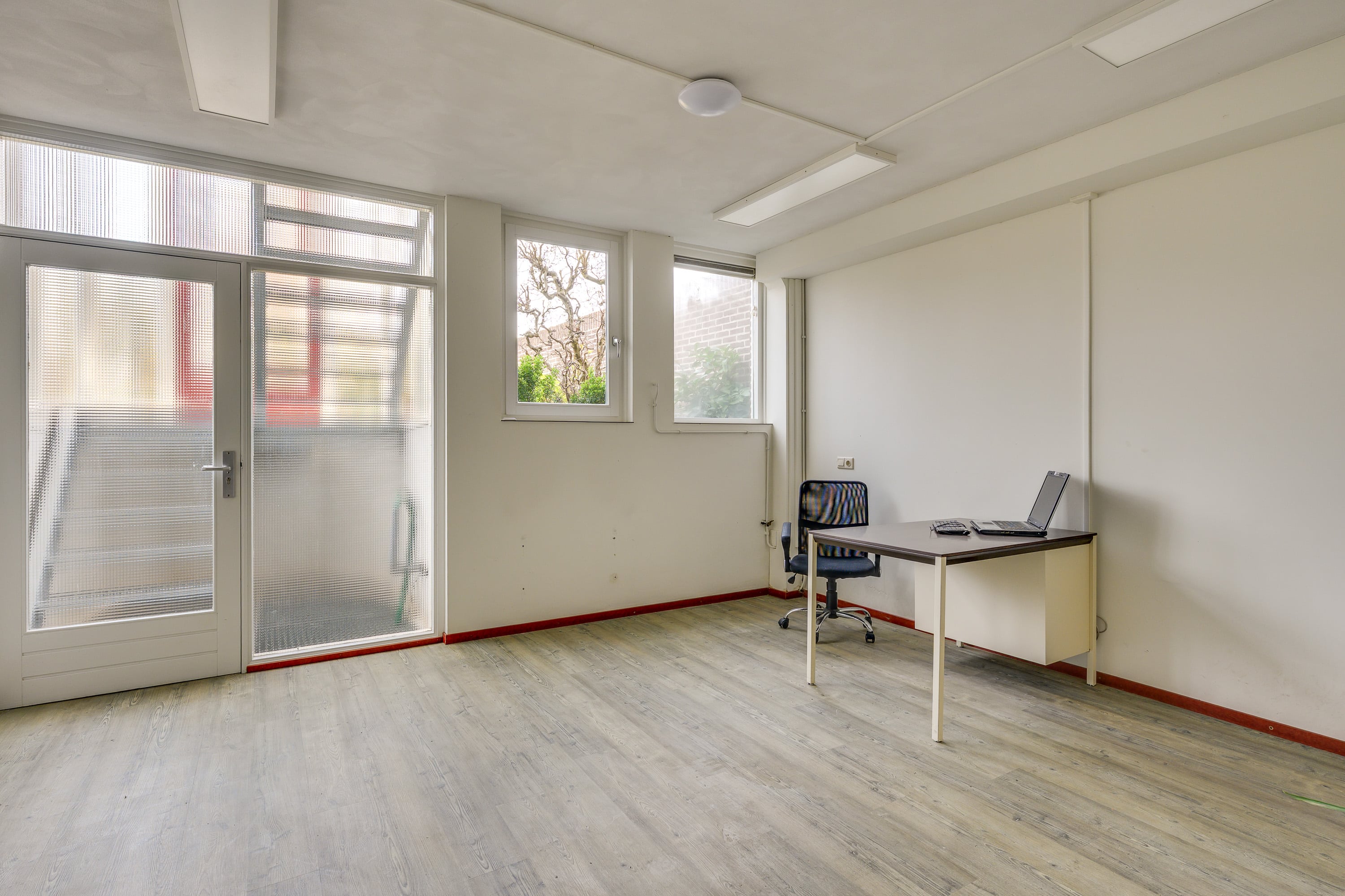 Op de begane grond bevindt zich links een kantoorruimte met plafondverwarming en een PVC-vloer. Rechts ligt een ruime garage in L-vorm of berging met vaste kastenwand over de volle lengte en driedubbele openslaande deuren naar de tuin. De verdieping beschikt over twee volwaardige kantoorruimtes met vloerverwarming en airco. De rechterruimte heeft een lichtkoepel over de volle breedte met zonwering, Velux dakramen en een luchtreinigingsunit met WTW. De tweede ruimte heeft eveneens een lichtkoepel en airco en sluit aan op een pantry met gootsteen. Daarnaast zijn er een aparte voorraadruimte met CV-ketel uit 2023 en een eigen toilet aanwezig. Het bijgebouw functioneert daardoor vrijwel zelfstandig. Op het dak liggen 21 zonnepanelen, geplaatst in 2020.