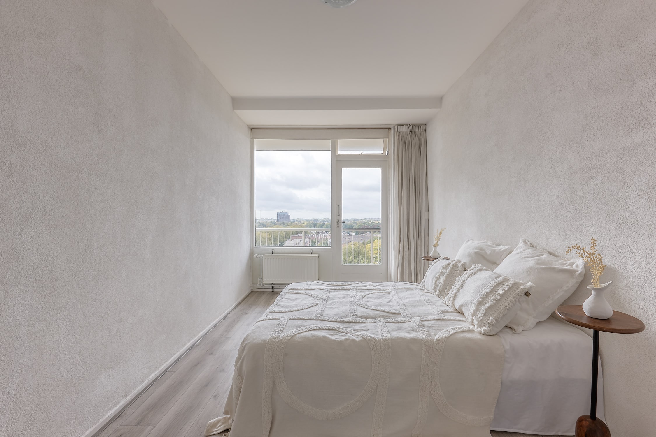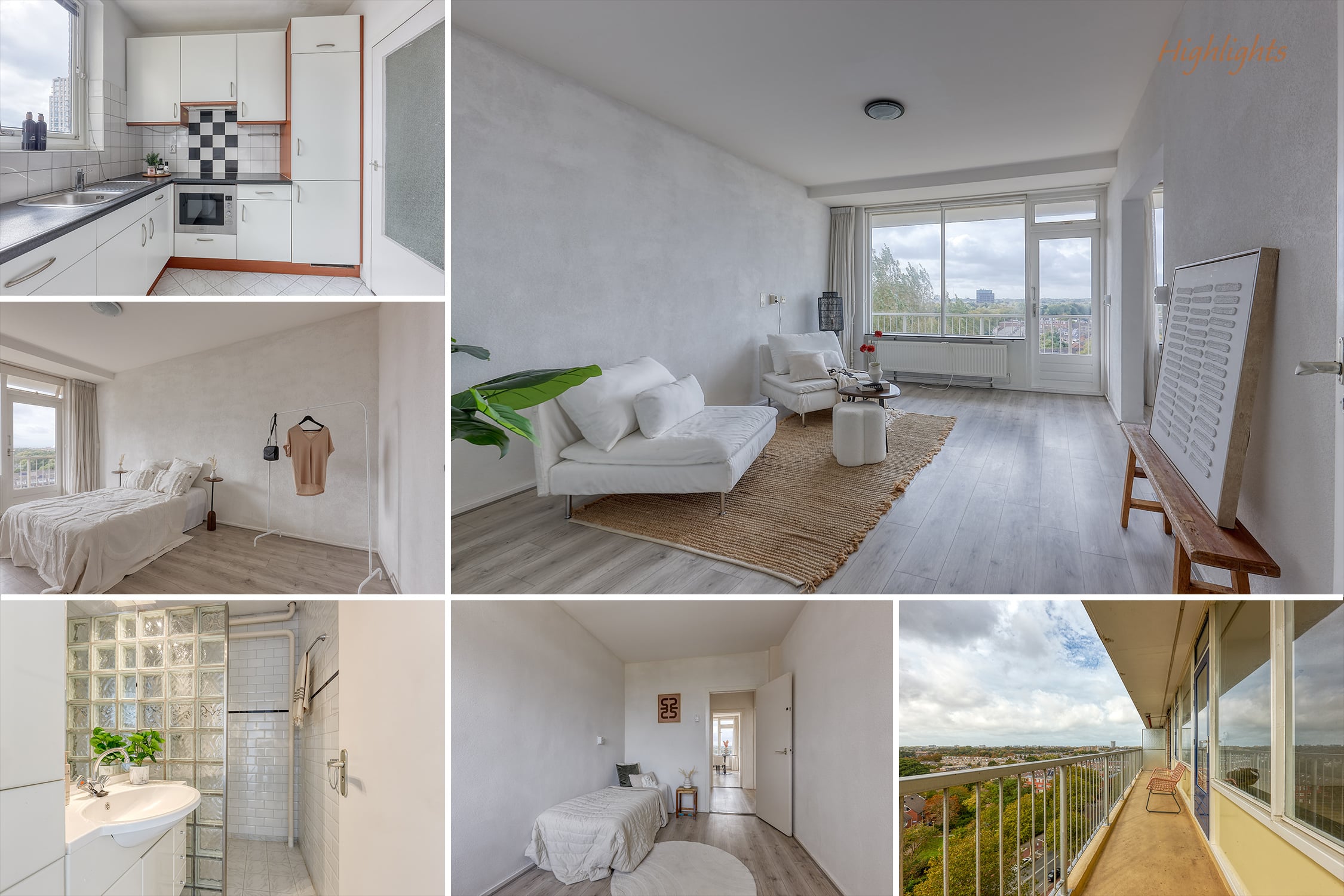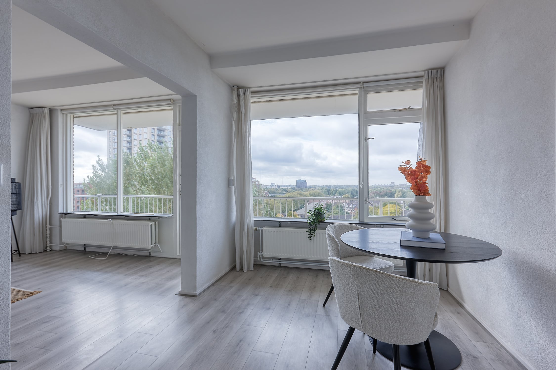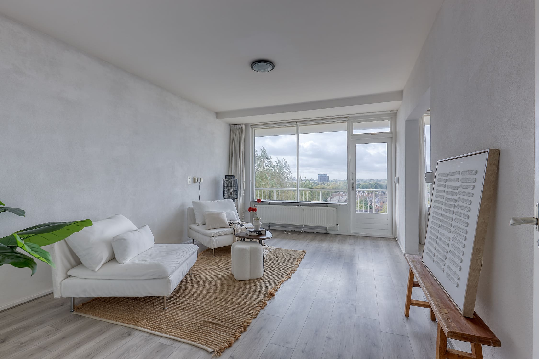 Op de 9e etage van een goed onderhouden appartementencomplex vind je dit lichte en moderne 3-kamerappartement met twee slaapkamers, een zonnig balkon en een prachtig uitzicht over de stad. Dankzij de grote ramen en de gunstige ligging geniet je hier de hele dag van een fijne lichtinval en veel privacy.