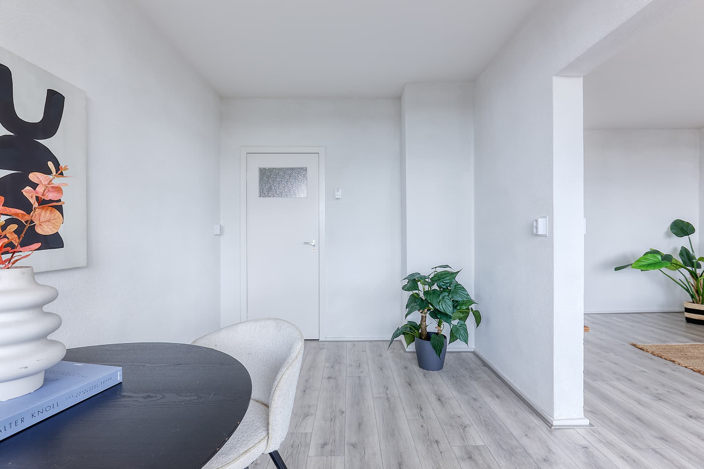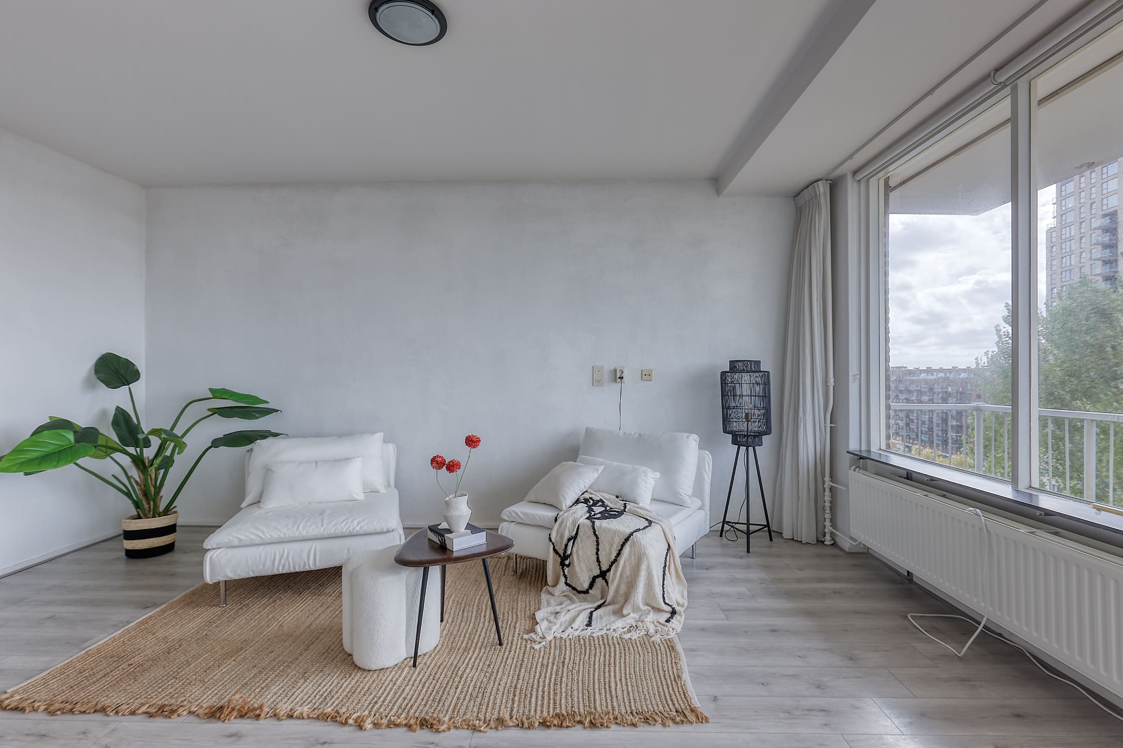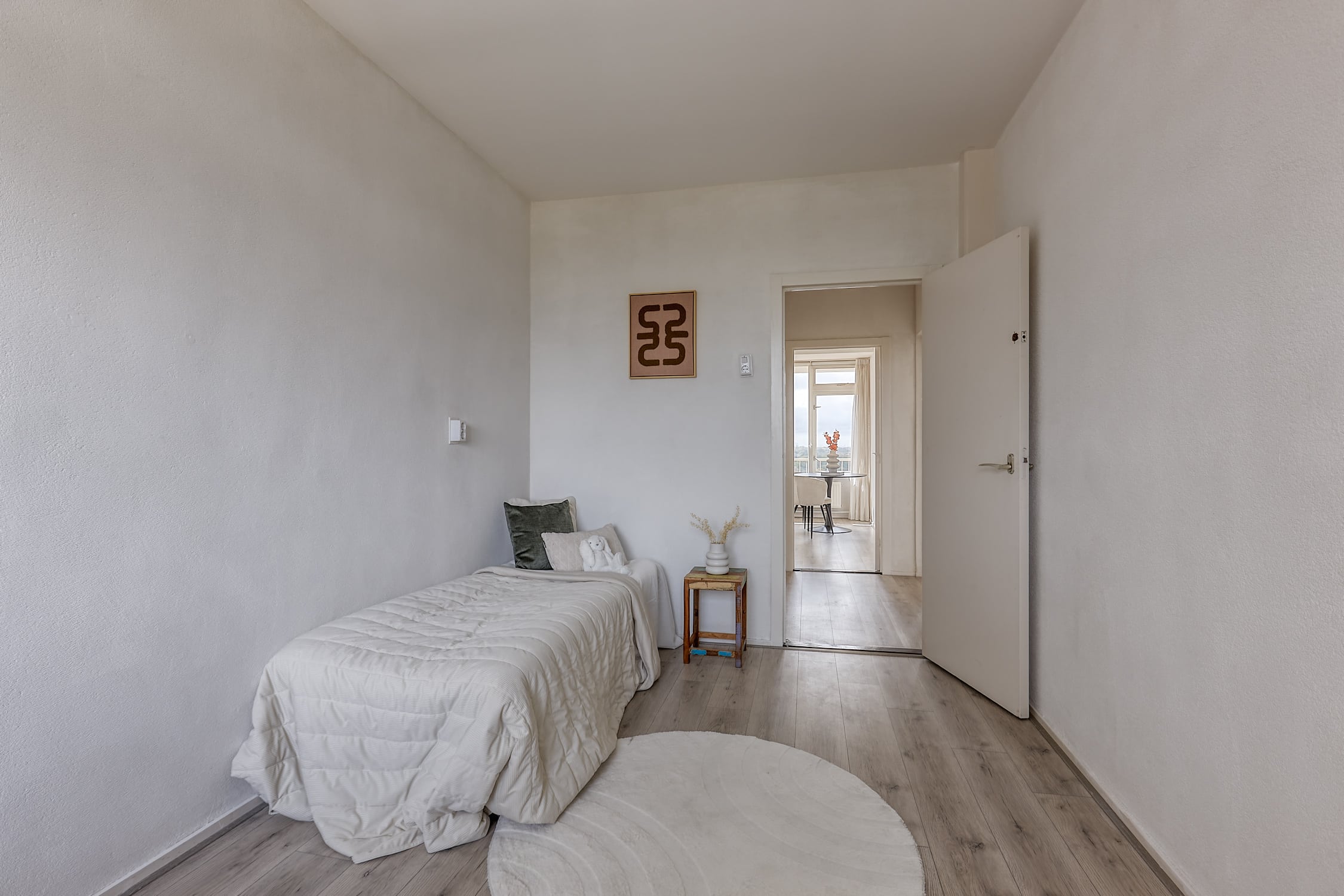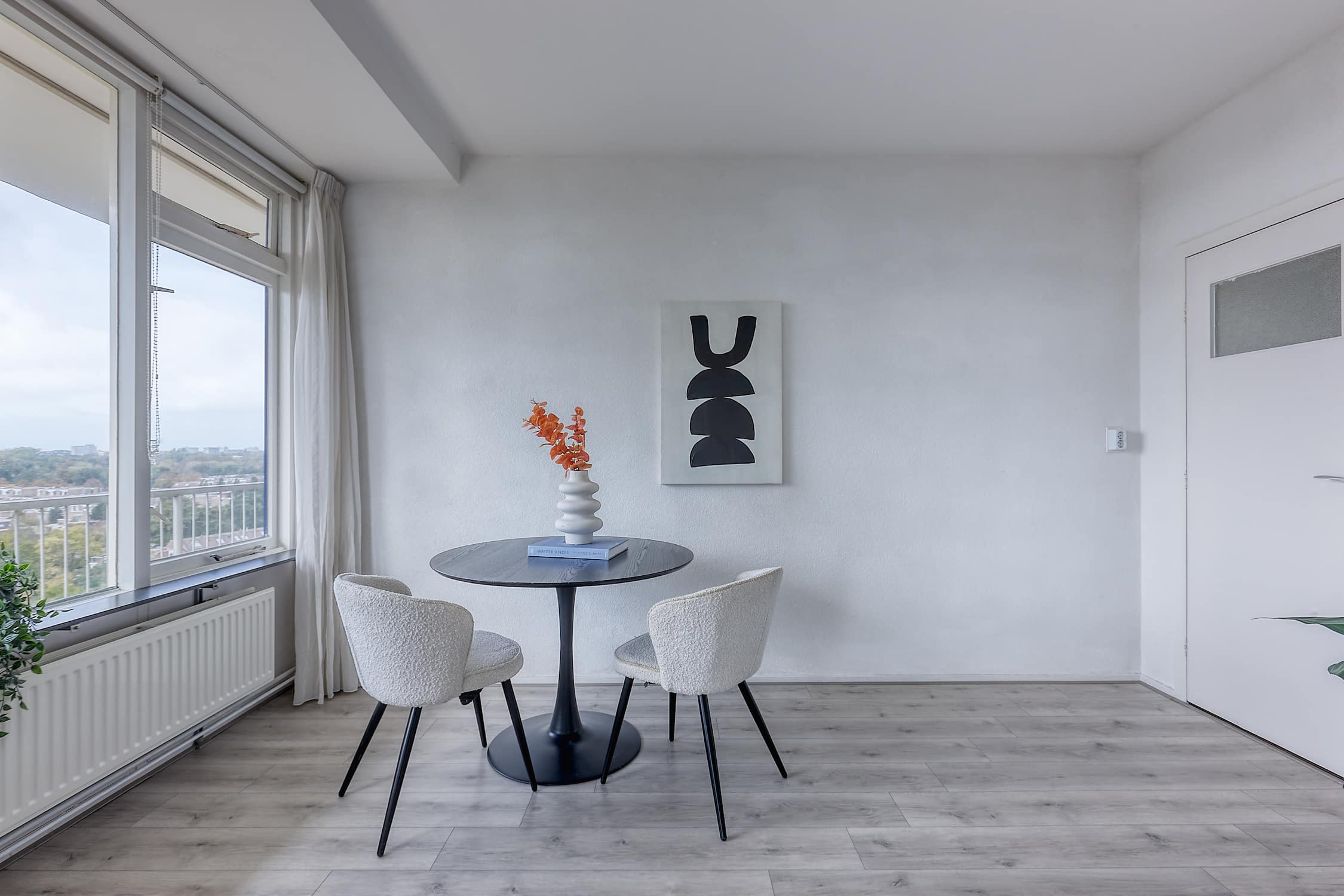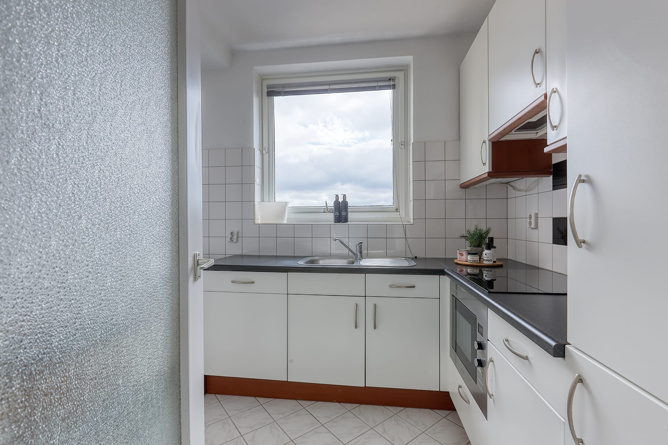 Op de 9e etage van een goed onderhouden appartementencomplex vind je dit lichte en moderne 3-kamerappartement met twee slaapkamers, een zonnig balkon en een prachtig uitzicht over de stad. Dankzij de grote ramen en de gunstige ligging geniet je hier de hele dag van een fijne lichtinval en veel privacy.