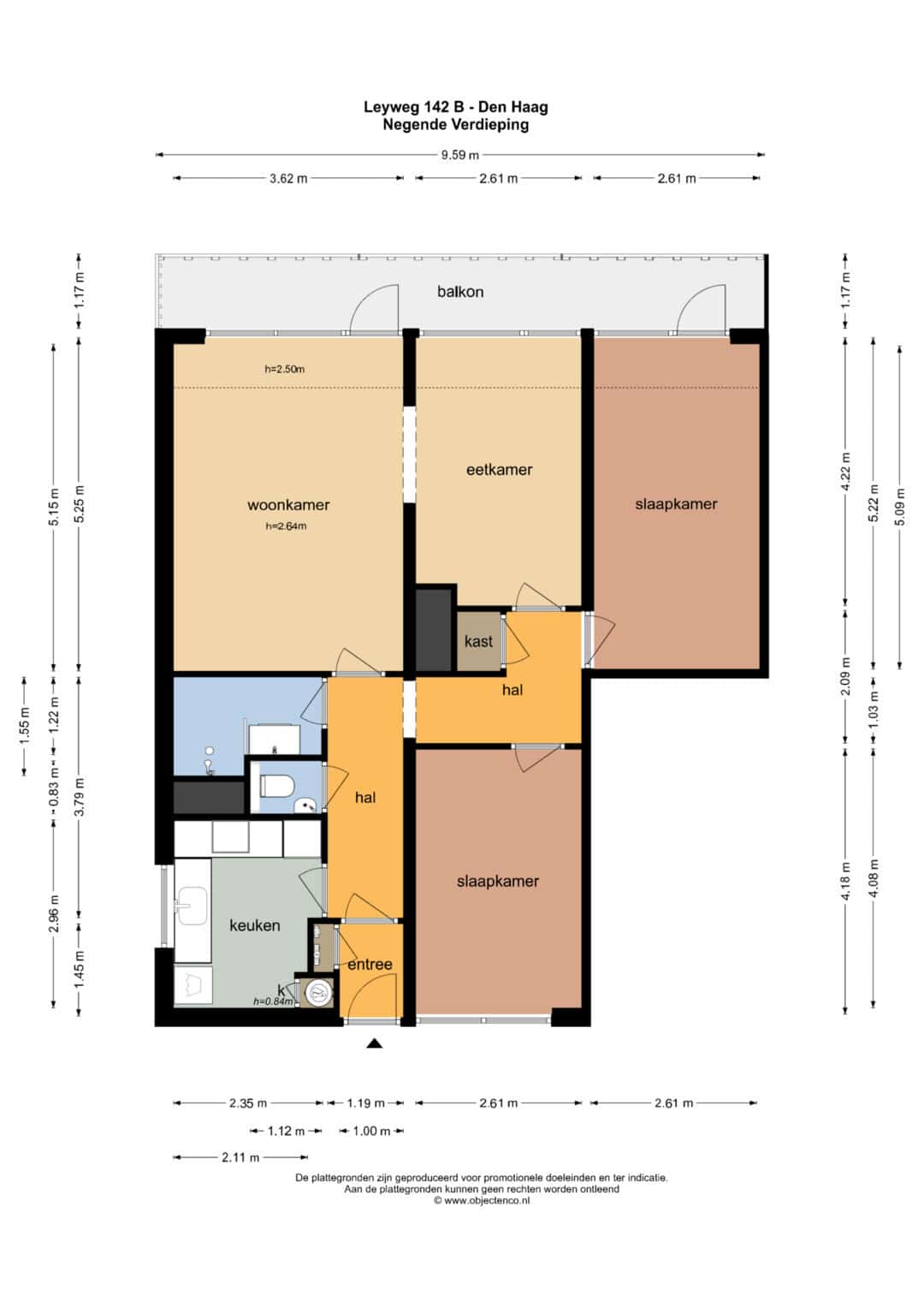 Via de nette centrale entree met lift bereik je de woning op de negende verdieping.