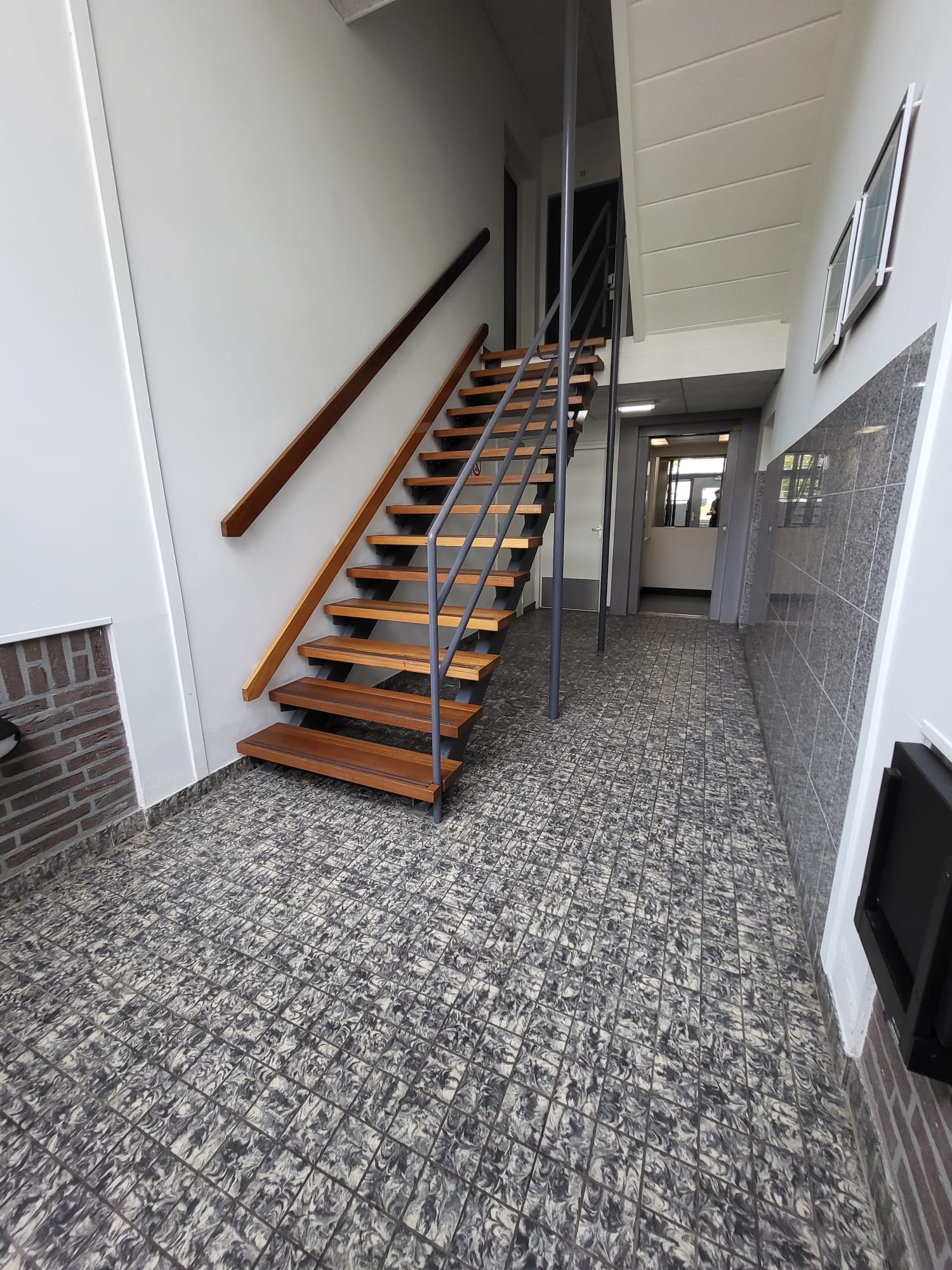 Hal/entree met intercomsysteem, brievenbussen en trap of lift naar de verdieping.