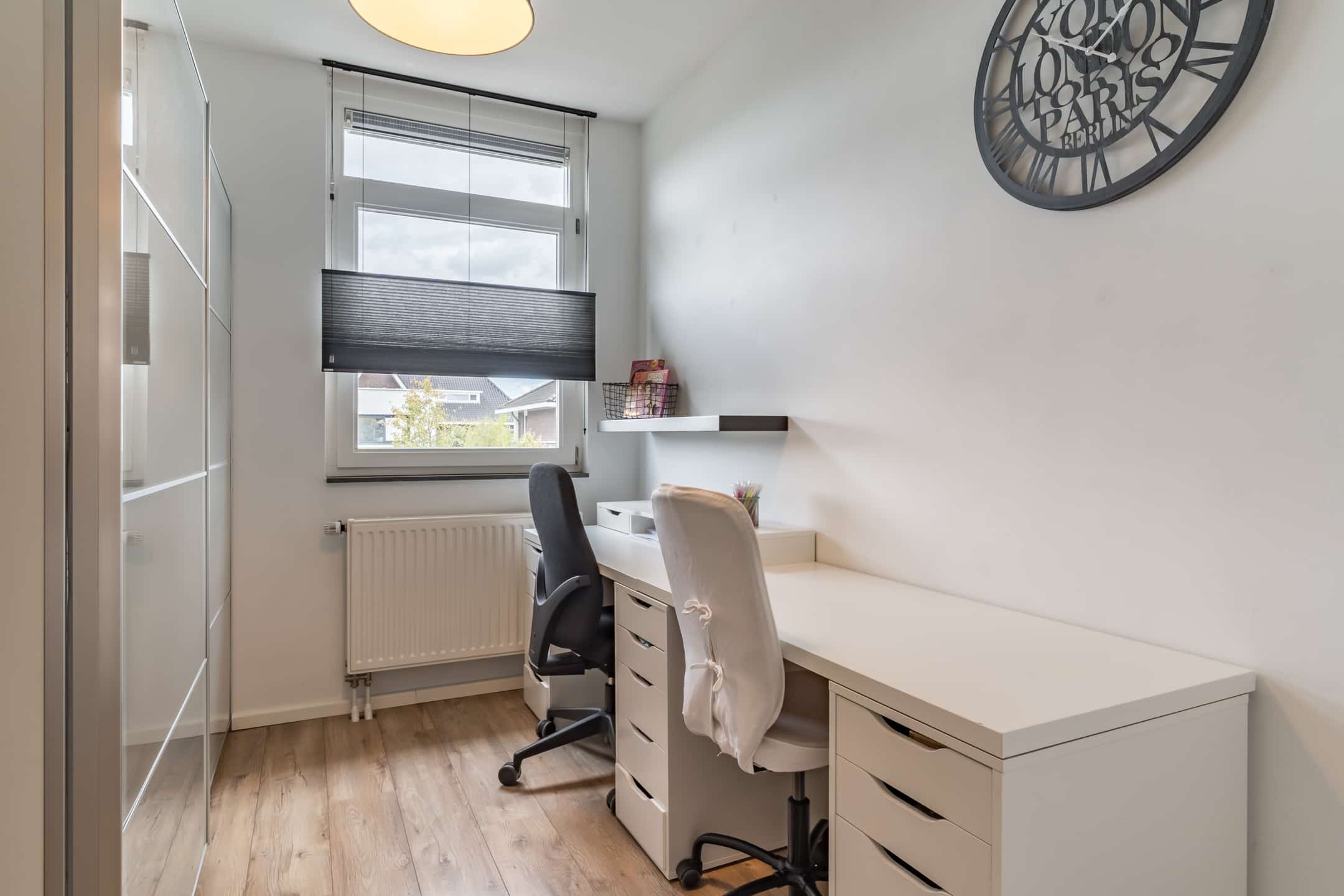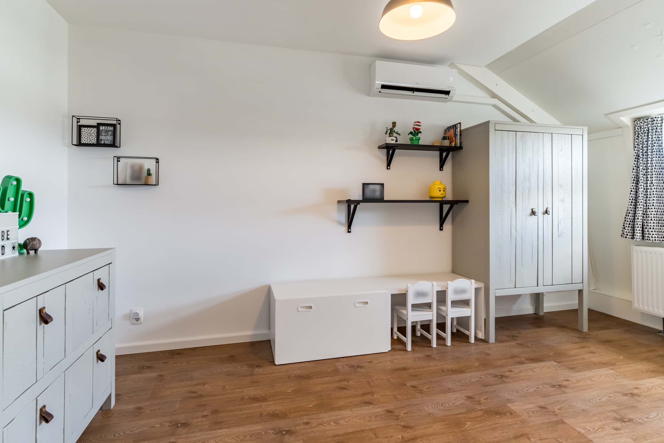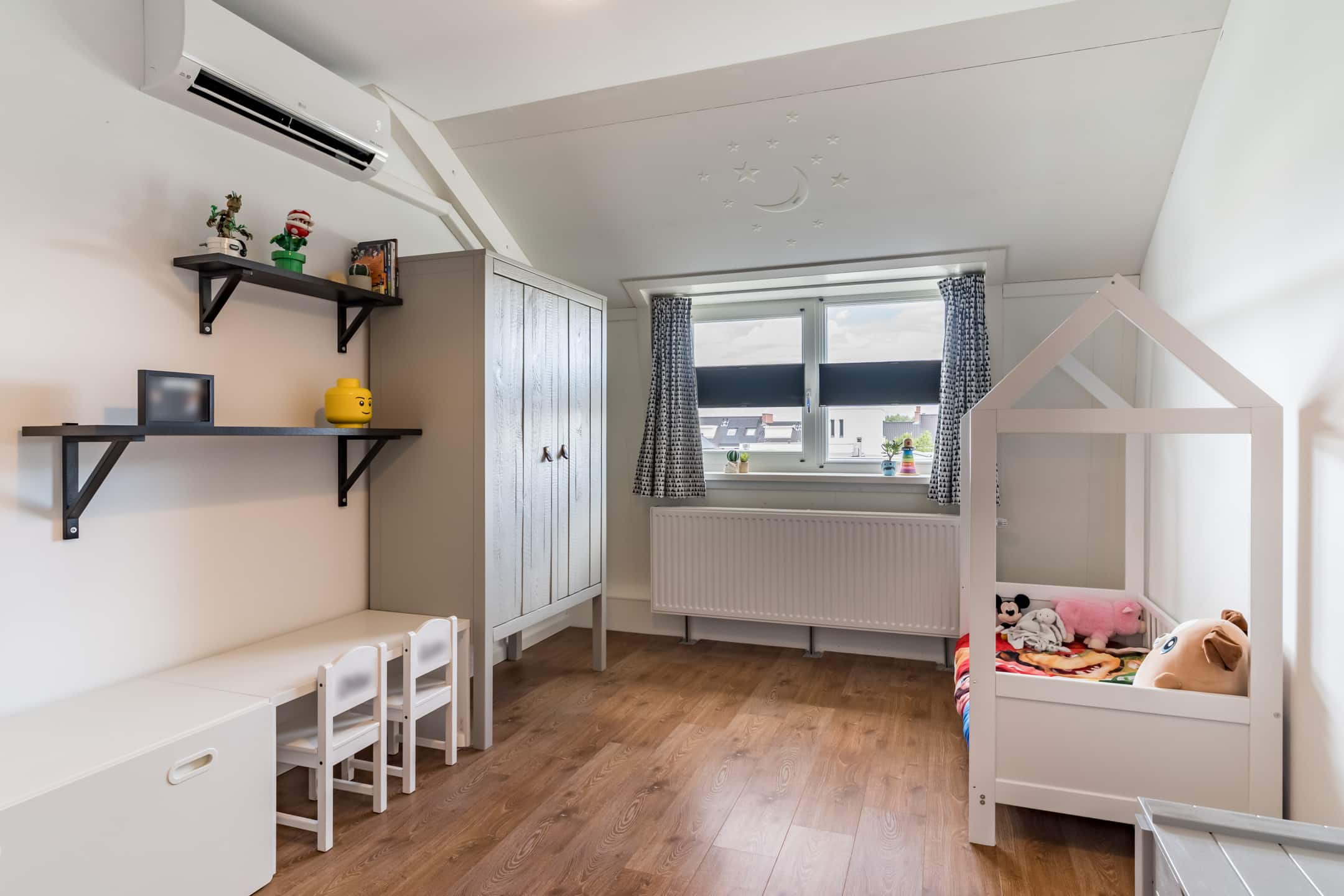 Twee ruime kamers van circa 13 m² aan de voor- en achterzijde en een derde kamer van circa 8 m² bieden volop mogelijkheden als slaap-, werk- of hobbykamer. Alle kamers zijn voorzien van een keurige laminaatvloer en grotendeels strucwerkwanden. De slaapkamer aan de achterzijde heeft een airco.
