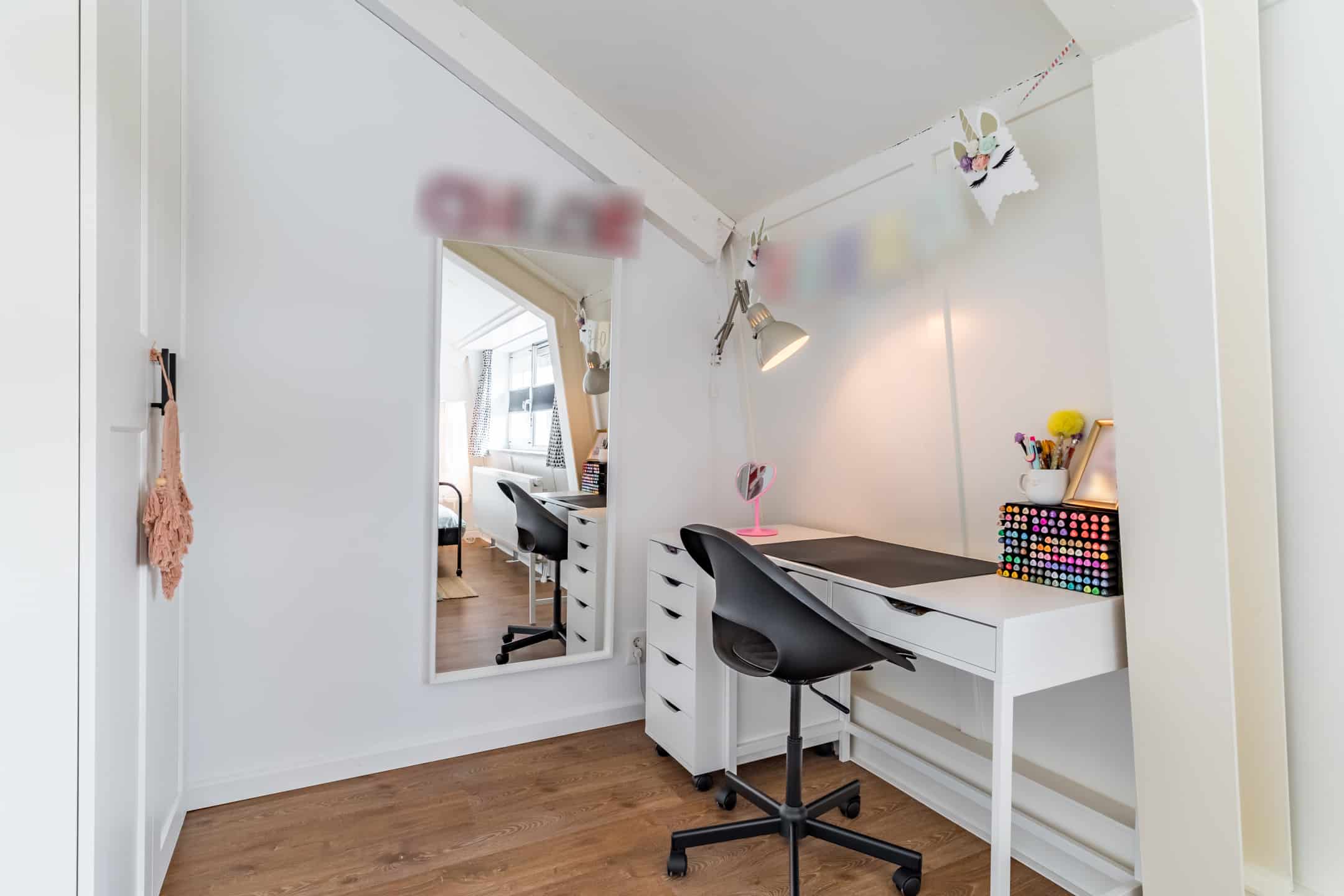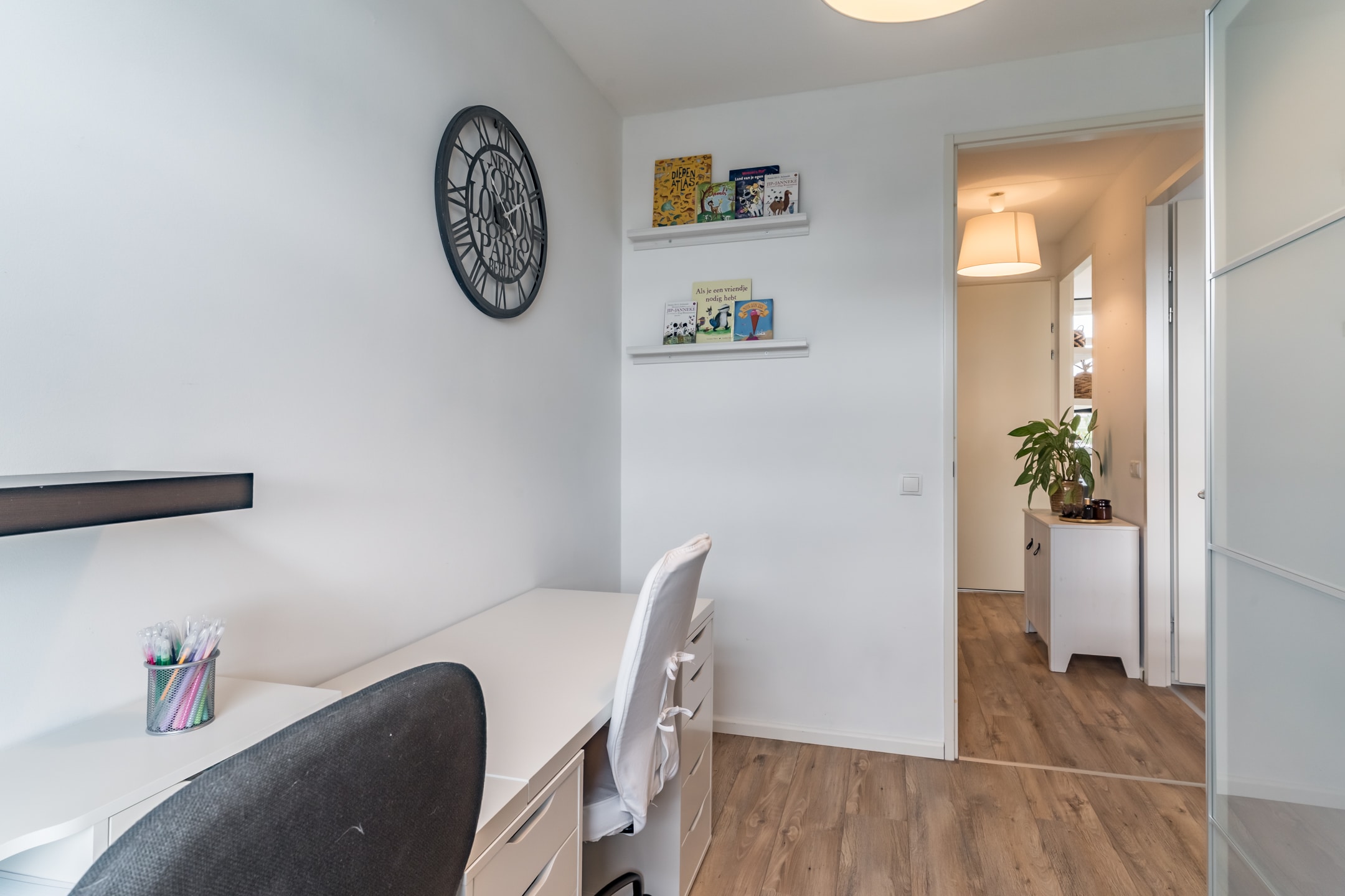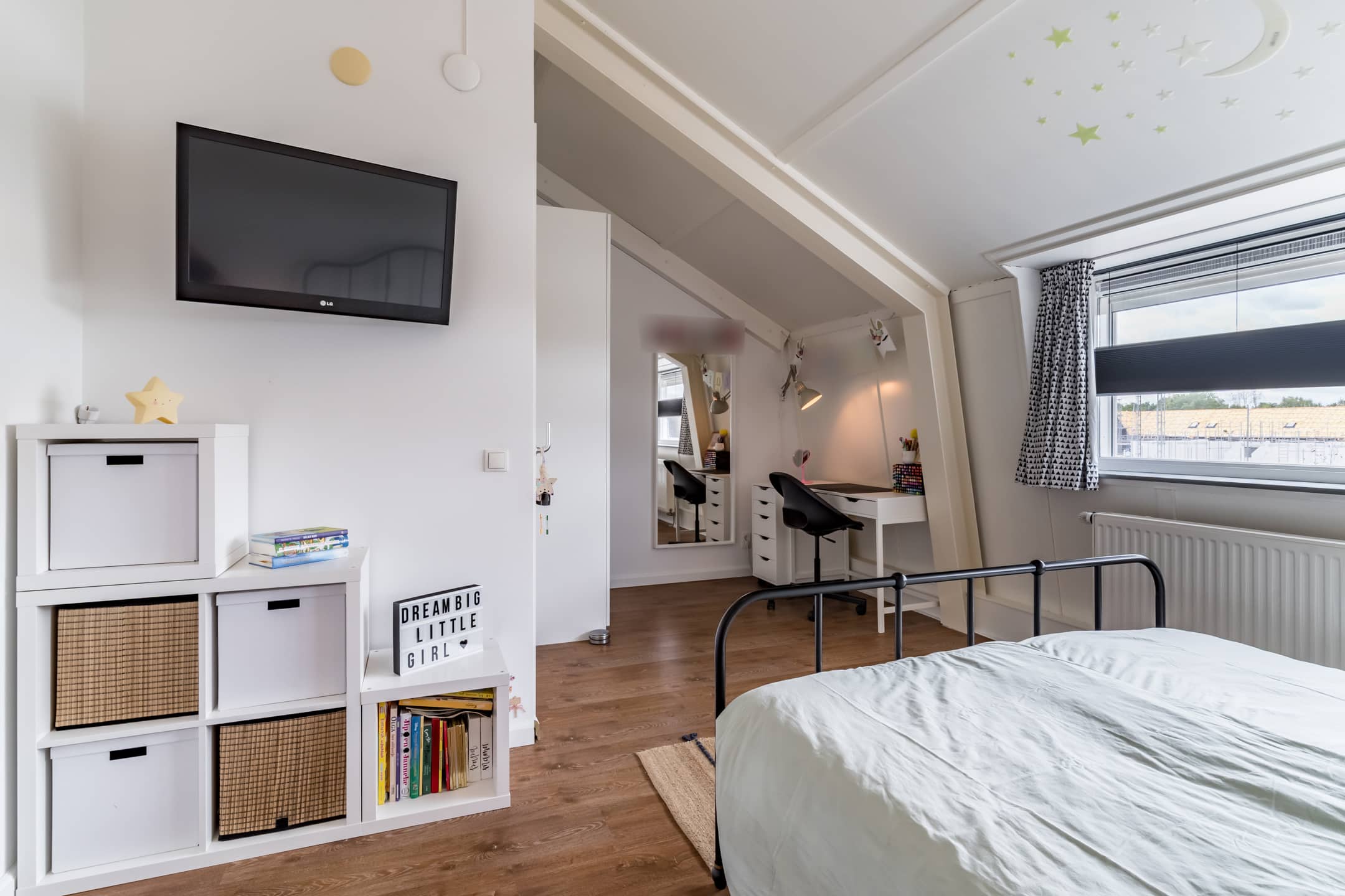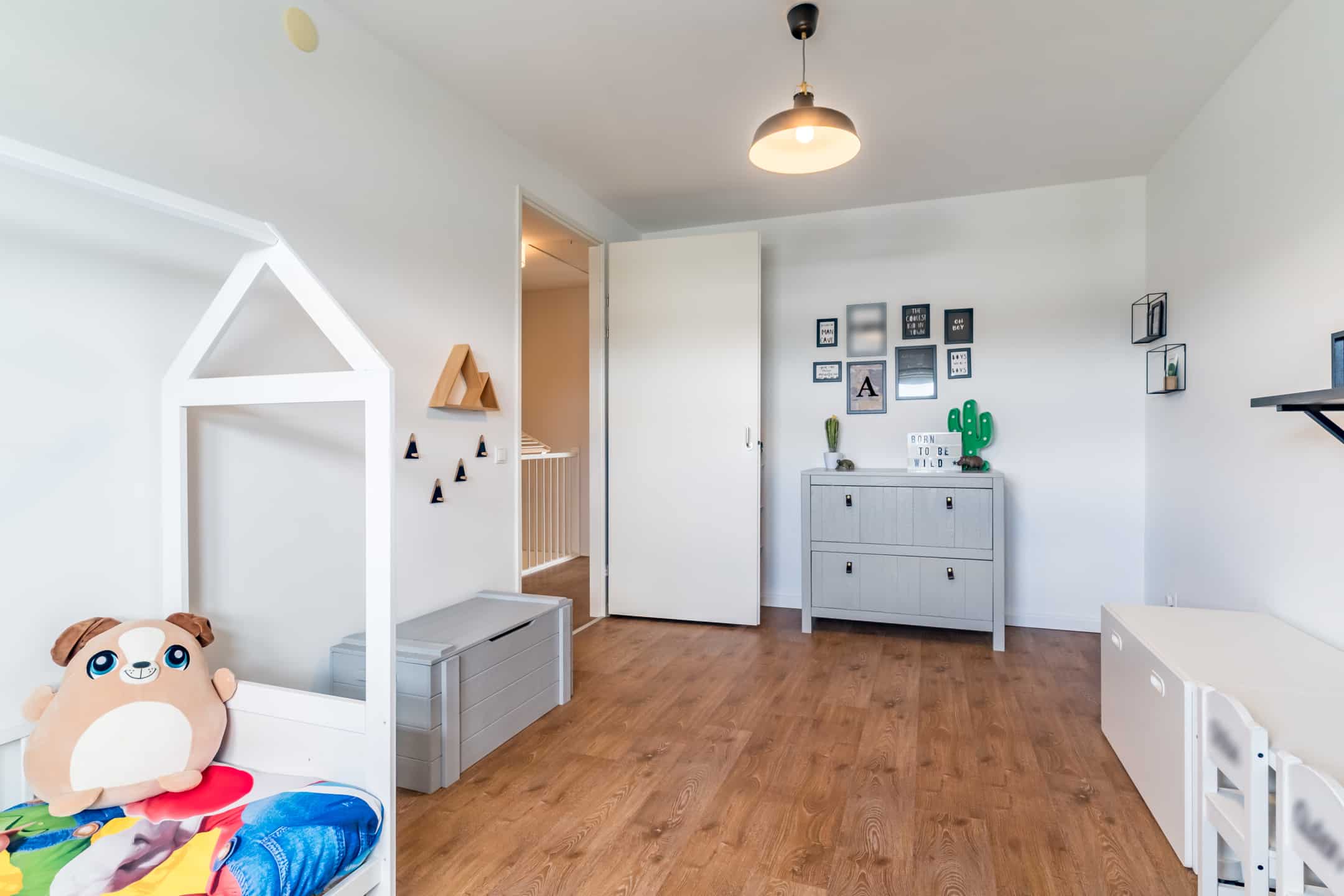Twee ruime kamers van circa 13 m² aan de voor- en achterzijde en een derde kamer van circa 8 m² bieden volop mogelijkheden als slaap-, werk- of hobbykamer. Alle kamers zijn voorzien van een keurige laminaatvloer en grotendeels strucwerkwanden. De slaapkamer aan de achterzijde heeft een airco.