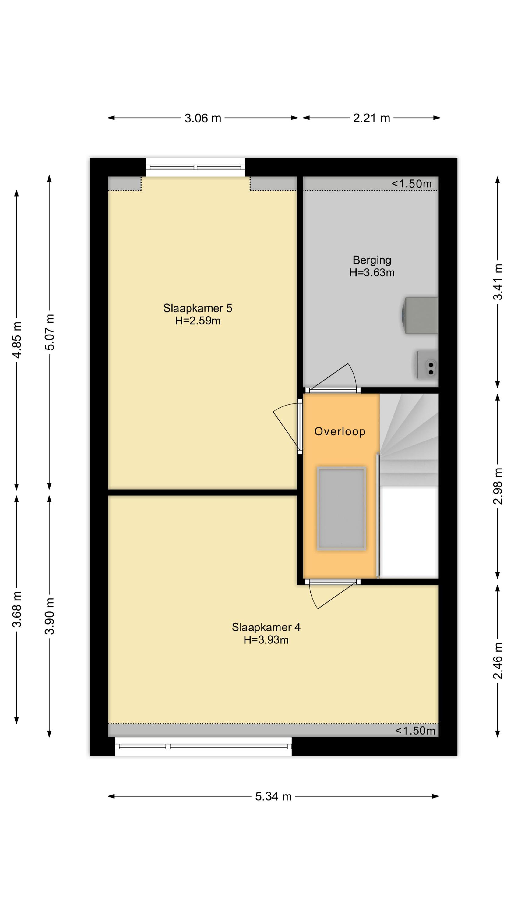 Via de vaste trap bereik je de tweede verdieping, met nog eens twee ruime slaapkamers, waarvan de slaapkamer aan de achterzijde ook een airco heeft en een aparte waskamer.