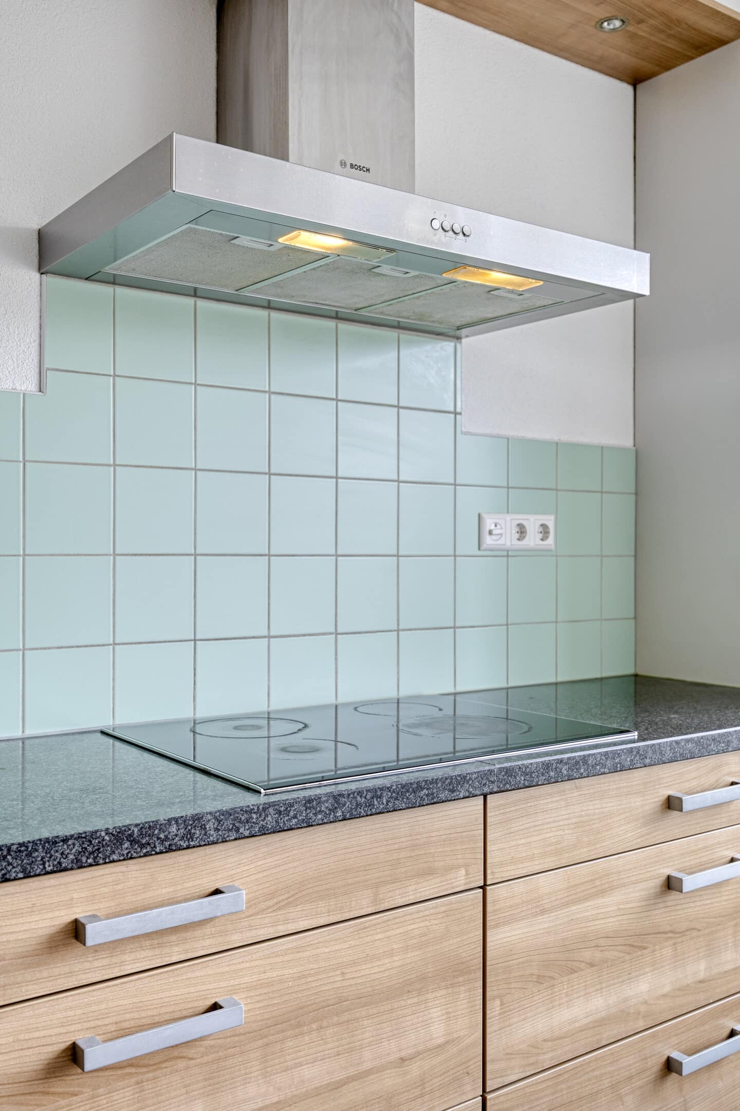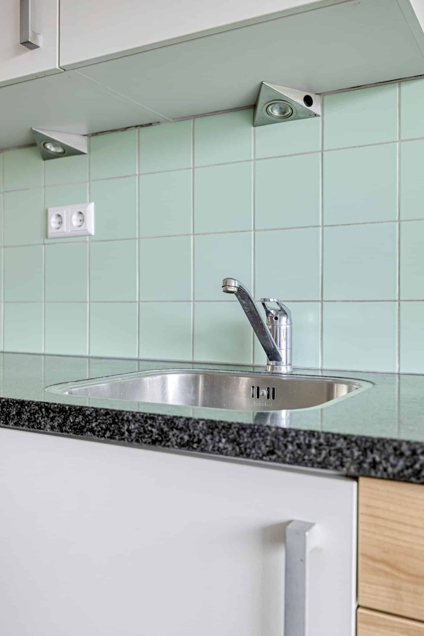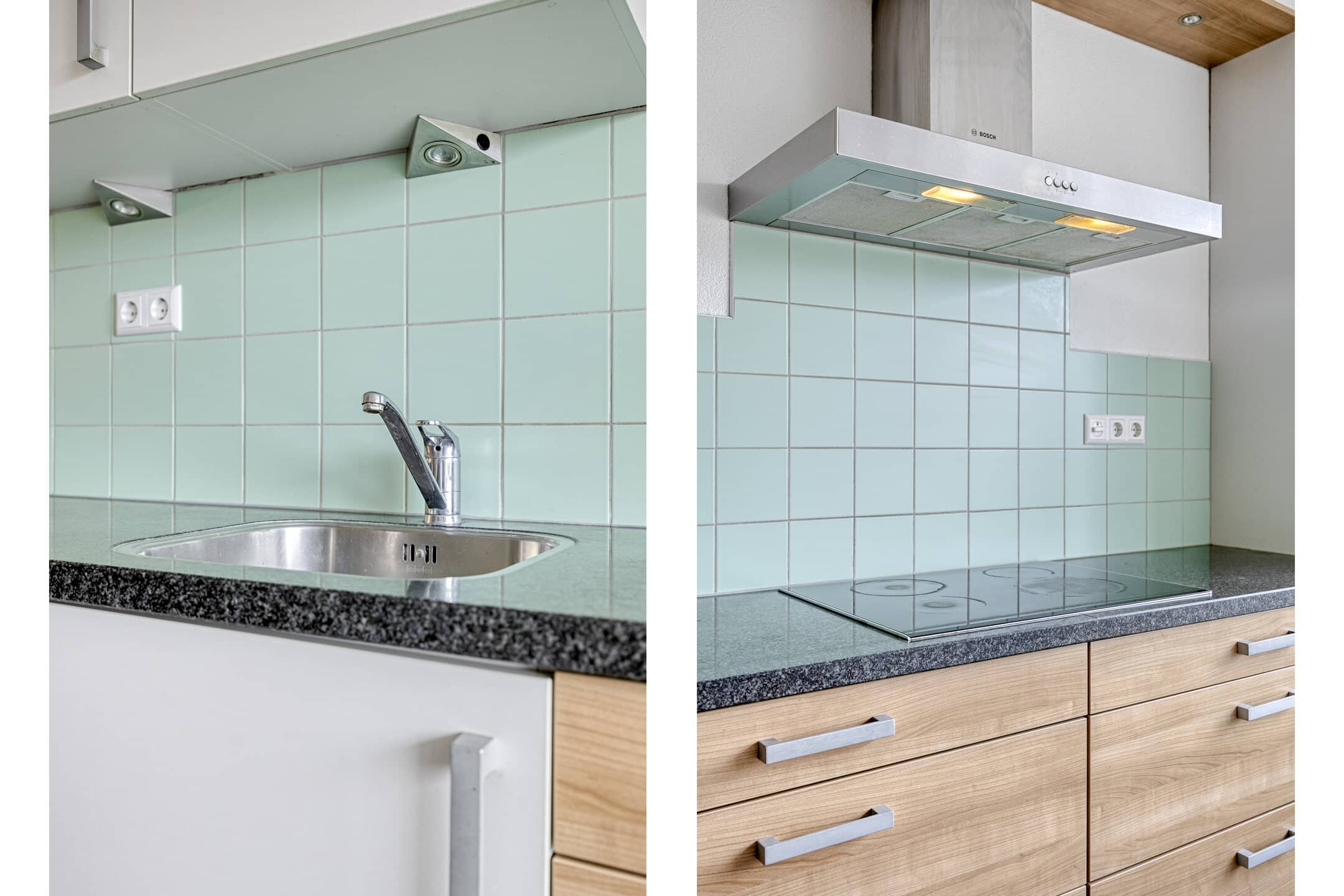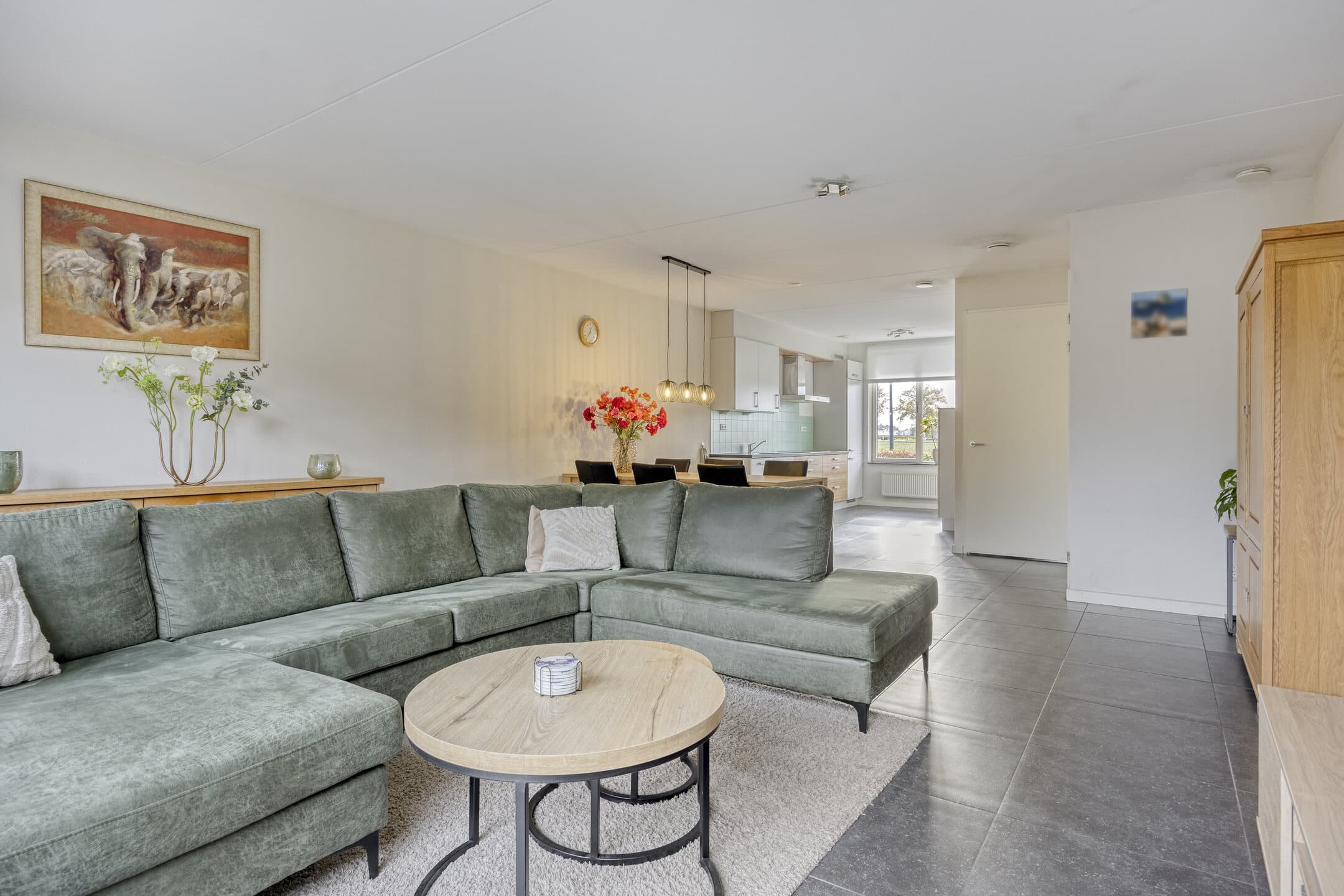 Aan de voorzijde is de open keuken, met uitzicht naar de rustige straat en het vele groen aan de overzijde.