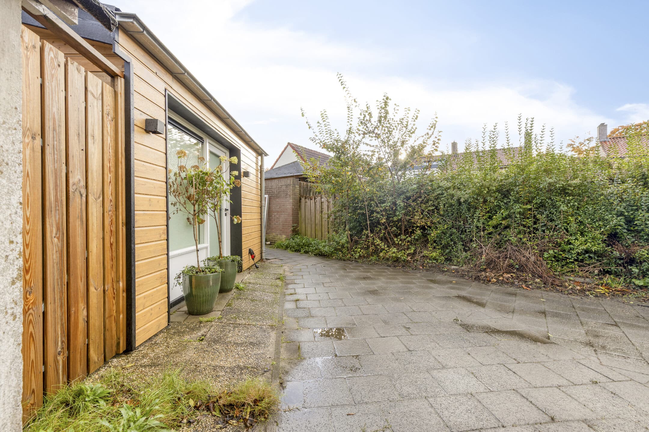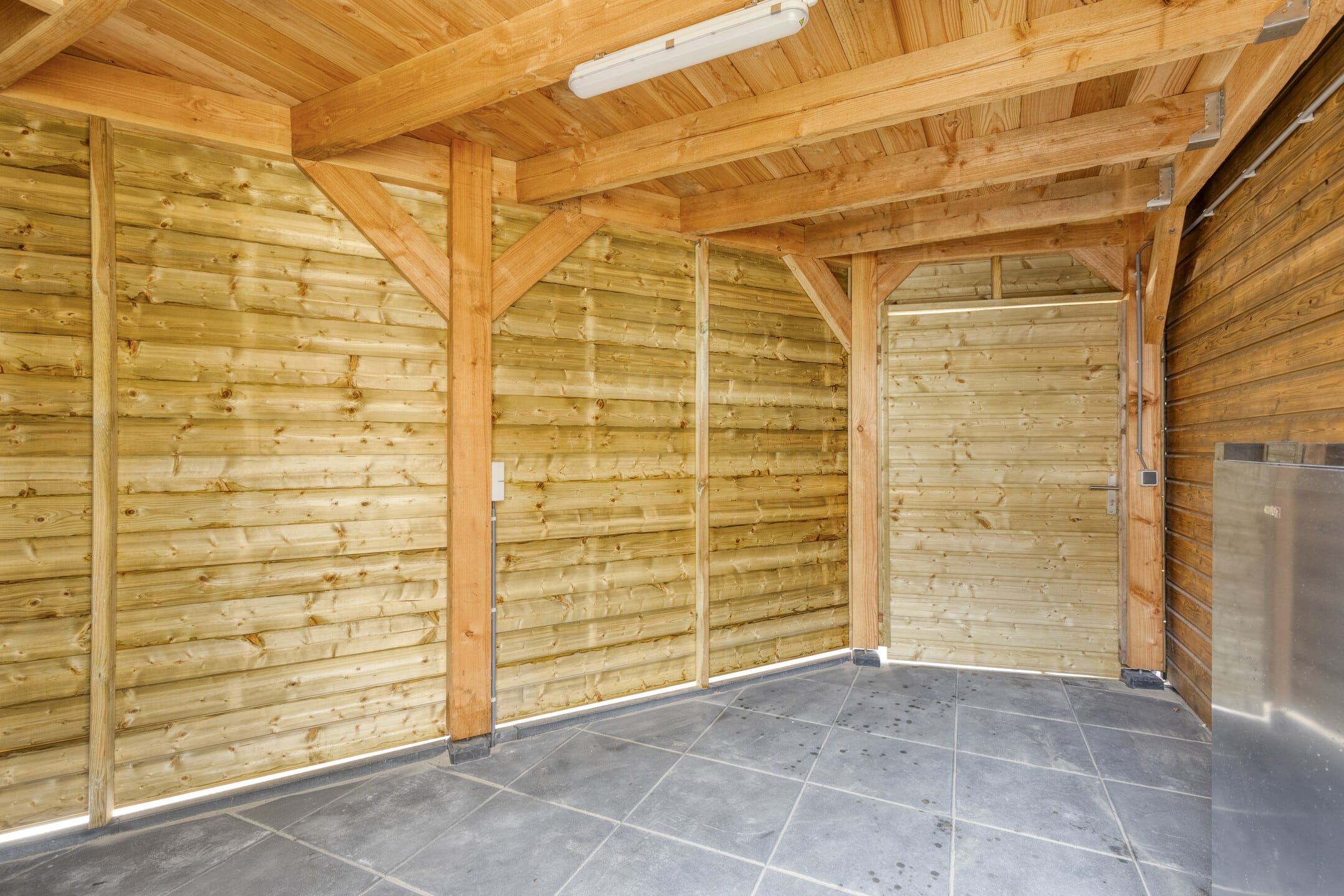 In de tuin staat een vrijstaand bijgebouw met eigen entree met: